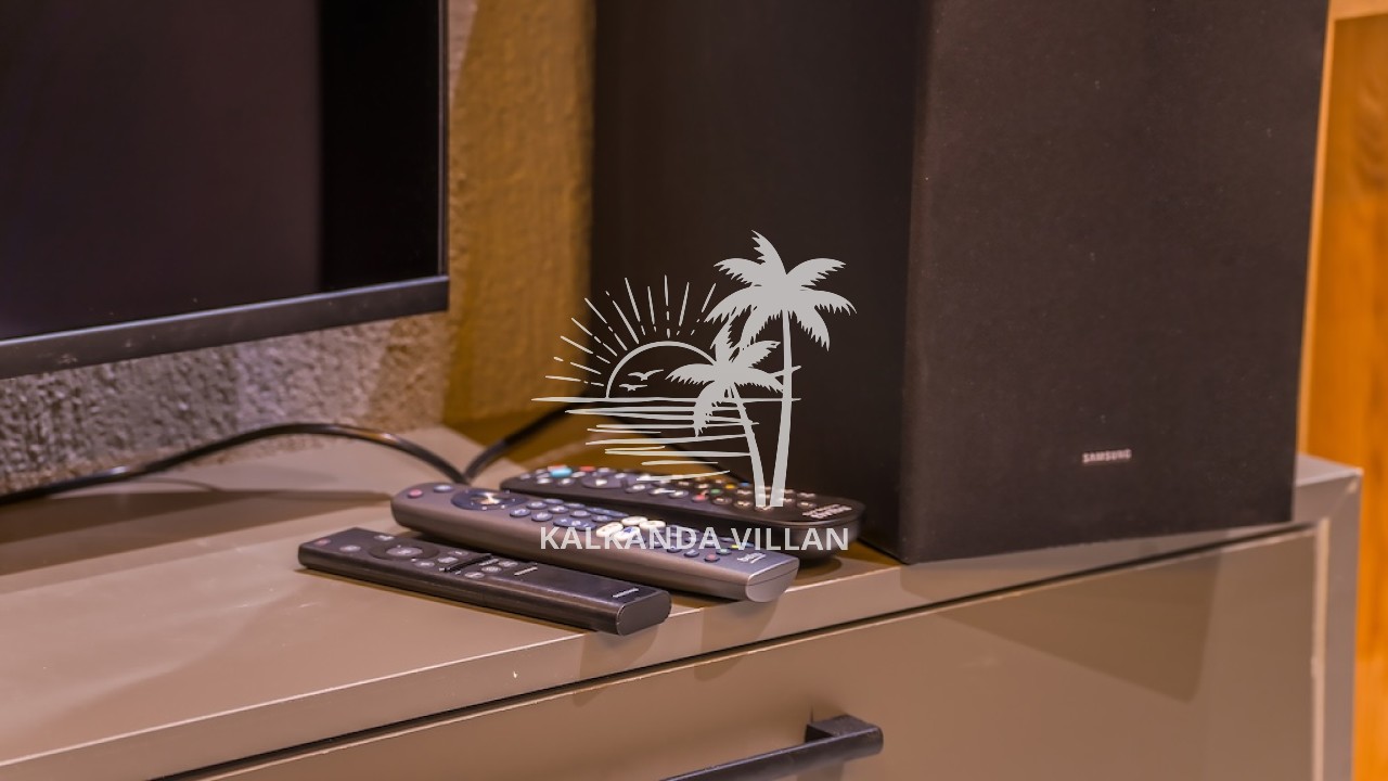 Wohnzimmer: Das Wohnzimmer verfügt über eine Sitzecke, einen Fernseher, eine Klimaanlage und einen Couchtisch. Von hier aus gelangen Sie auf die Poolterrasse.