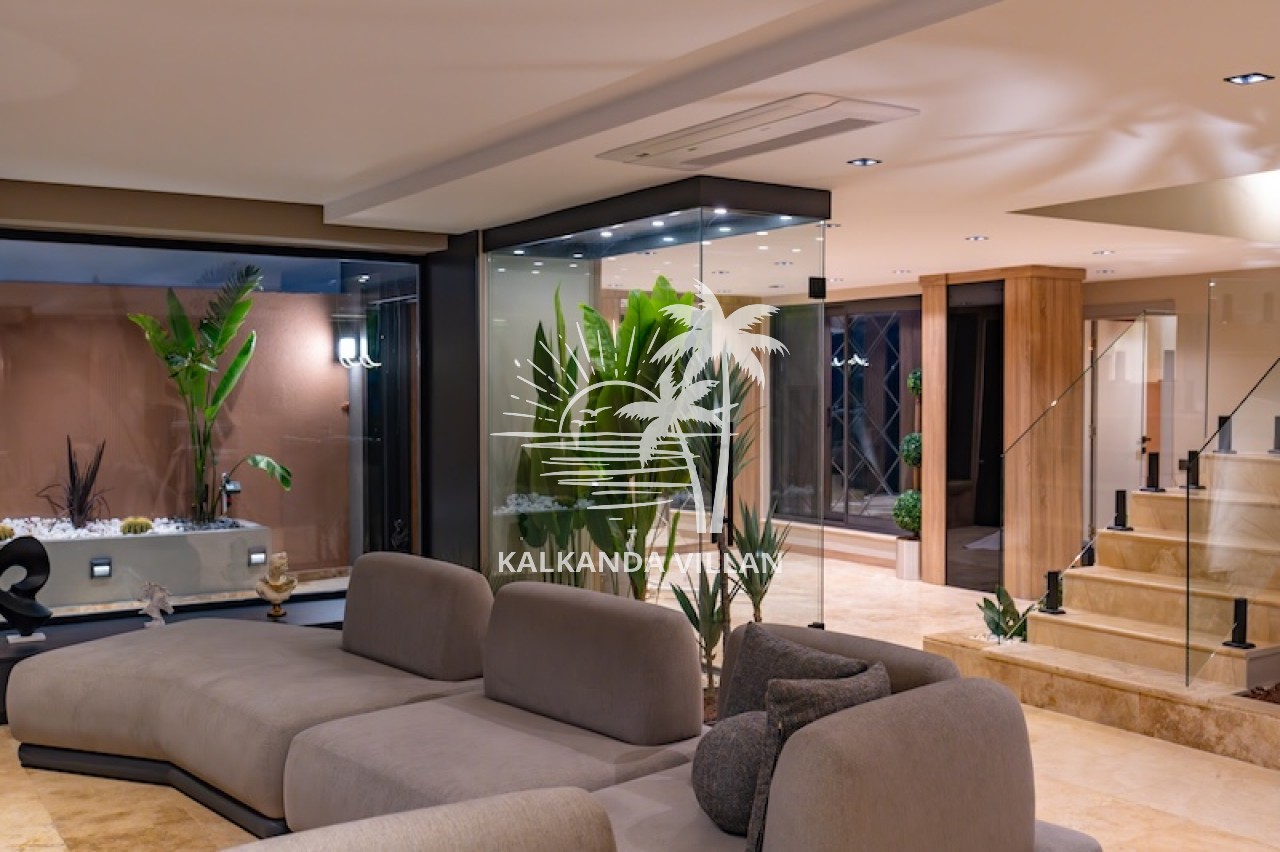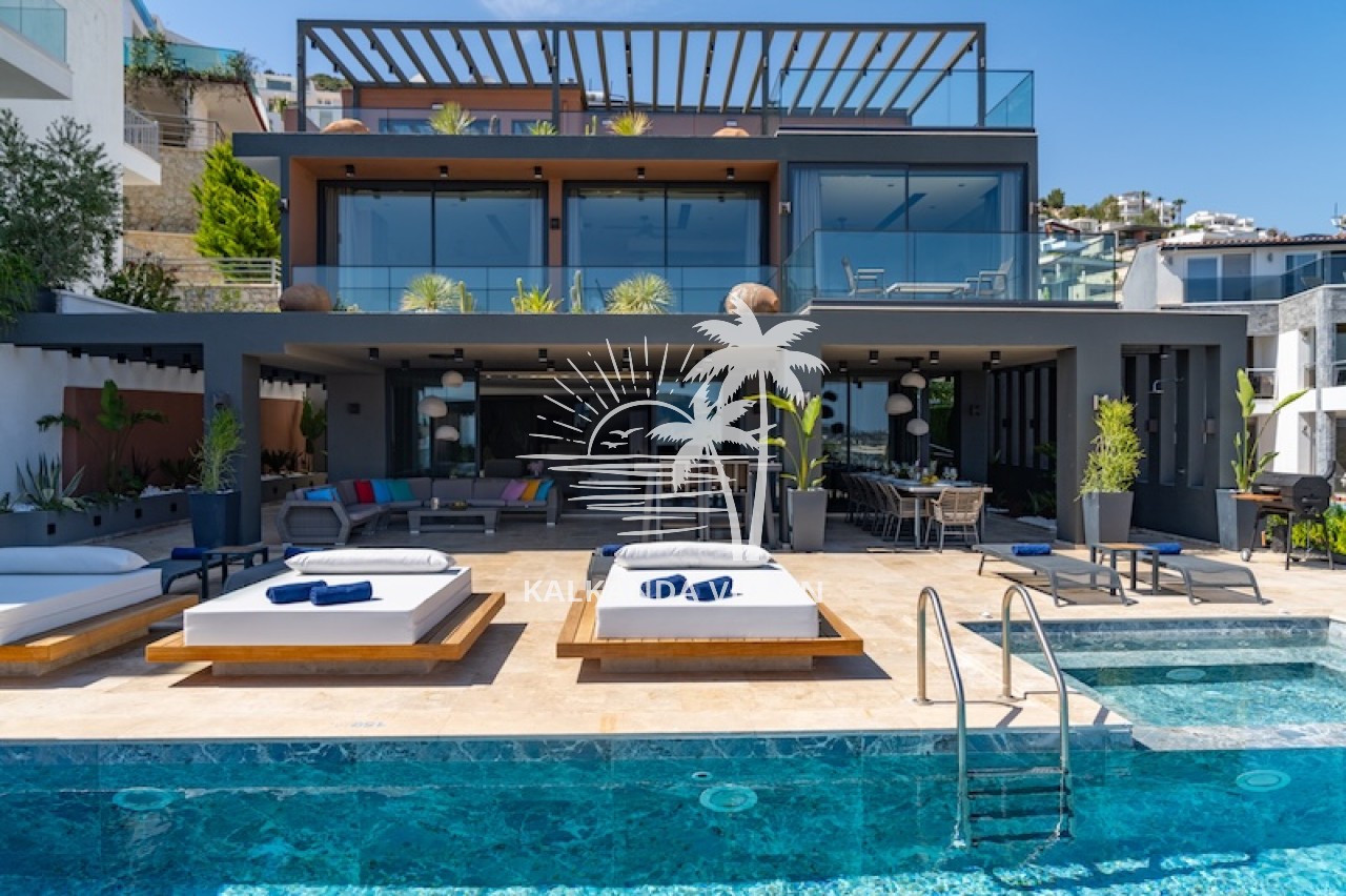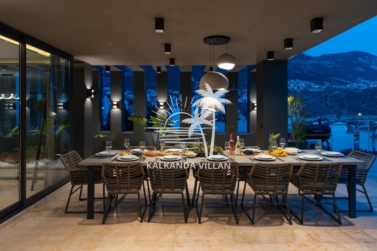 Die Villa Buse Duo liegt im Ortaalan-Viertel, dem Zentrum von Kalkan, und ist eine luxuriöse Ferienvilla, die sich durch modernes Design, großzügige Wohnbereiche und einen atemberaubenden Blick auf das Mittelmeer auszeichnet. Mit 6 Schlafzimmern und 6 Badezimmern bietet die Villa Platz für bis zu 12 Personen und ist somit ideal für große Familien und Freundesgruppen. Der Infinity-Pool und die komfortable Sonnenterrasse laden mit Meerblick zum Entspannen ein. Der Essbereich im Freien und der Grillplatz bieten den perfekten Rahmen für gemütliche Abende. Dank der modernen amerikanischen Küche, des geräumigen Wohnzimmers und der großen Fensterfronten genießen Sie im Inneren den ganzen Tag über natürliches Licht und einen Panoramablick. Ein Spielzimmer und Unterhaltungsmöglichkeiten wie Tischtennis, Billard und Tischfußball runden Ihren Urlaub ab. Die Villa Buse Duo bietet ein unvergessliches Urlaubserlebnis, das Lage, Komfort und Unterhaltung perfekt vereint – ideal für alle, die eine Ferienvilla mit Meerblick suchen.