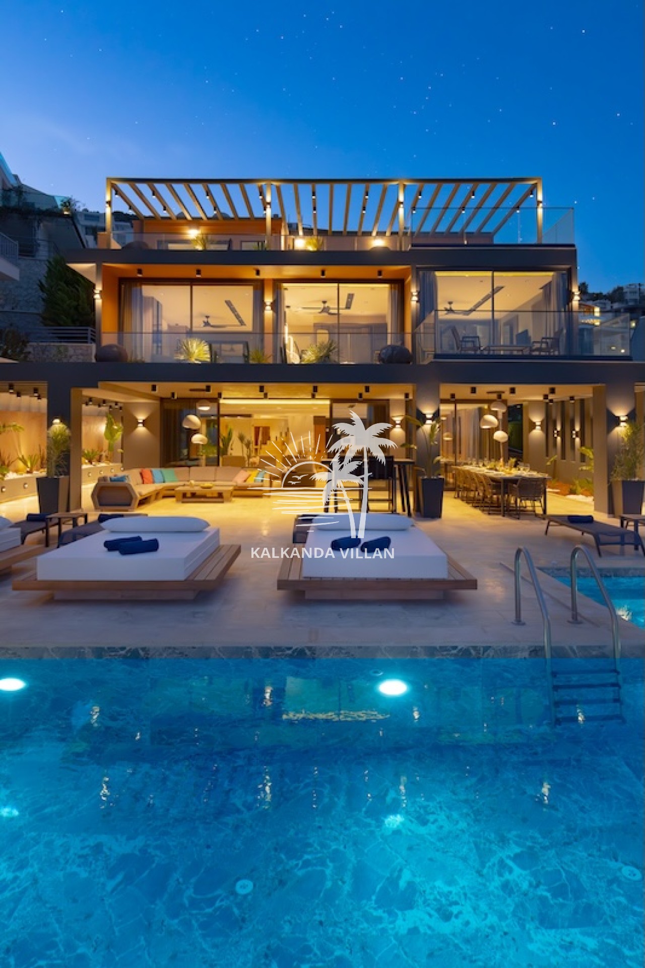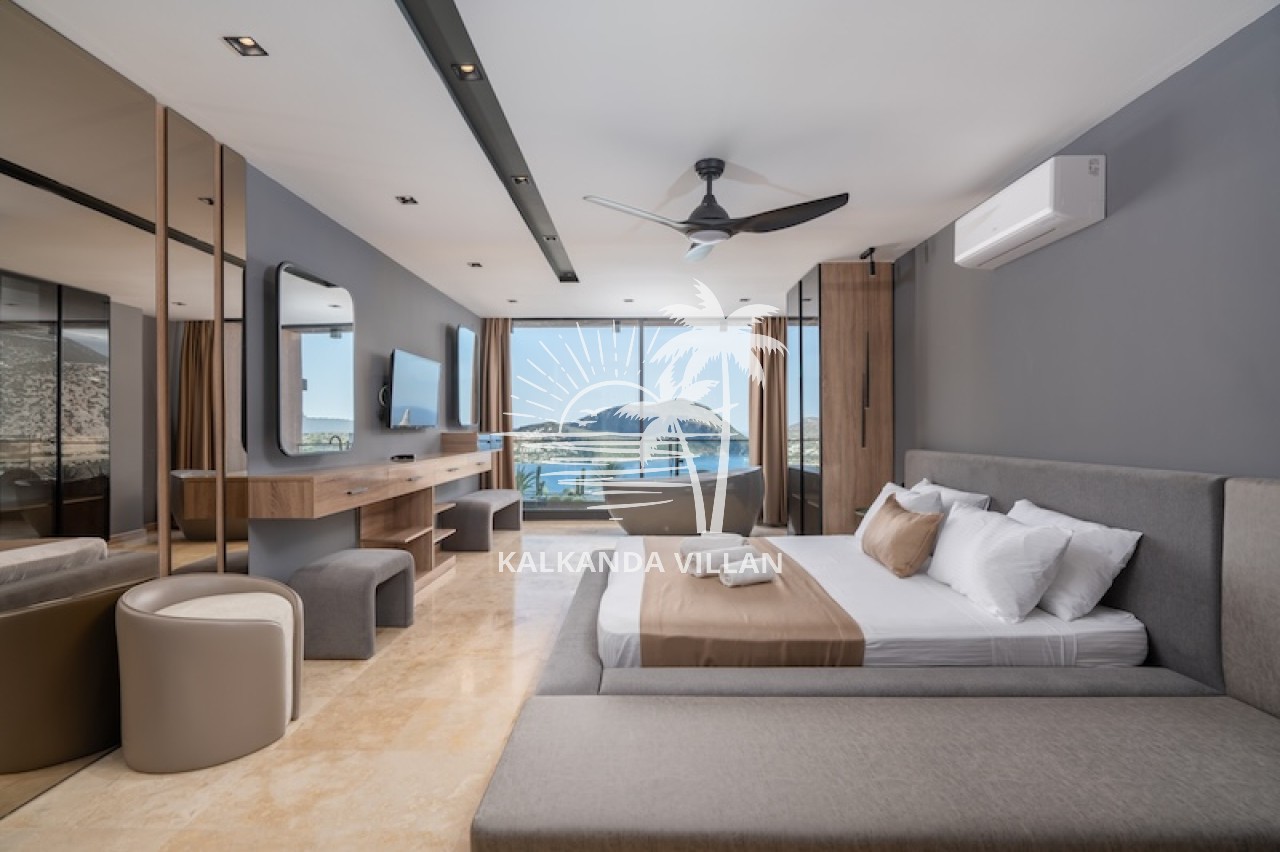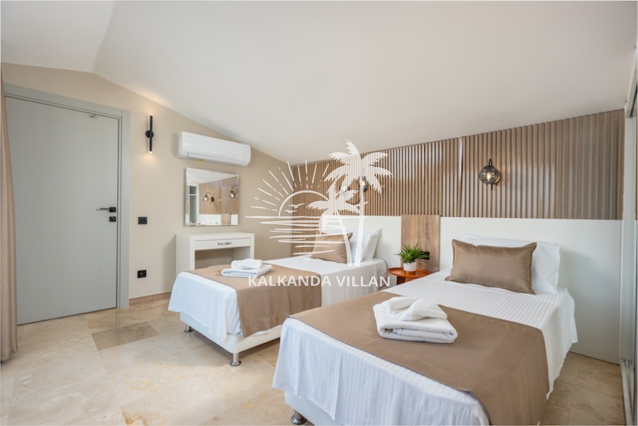 Die Villa Buse Duo liegt im Ortaalan-Viertel, dem Zentrum von Kalkan, und ist eine luxuriöse Ferienvilla, die sich durch modernes Design, großzügige Wohnbereiche und einen atemberaubenden Blick auf das Mittelmeer auszeichnet. Mit 6 Schlafzimmern und 6 Badezimmern bietet die Villa Platz für bis zu 12 Personen und ist somit ideal für große Familien und Freundesgruppen. Der Infinity-Pool und die komfortable Sonnenterrasse laden mit Meerblick zum Entspannen ein. Der Essbereich im Freien und der Grillplatz bieten den perfekten Rahmen für gemütliche Abende. Dank der modernen amerikanischen Küche, des geräumigen Wohnzimmers und der großen Fensterfronten genießen Sie im Inneren den ganzen Tag über natürliches Licht und einen Panoramablick. Ein Spielzimmer und Unterhaltungsmöglichkeiten wie Tischtennis, Billard und Tischfußball runden Ihren Urlaub ab. Die Villa Buse Duo bietet ein unvergessliches Urlaubserlebnis, das Lage, Komfort und Unterhaltung perfekt vereint – ideal für alle, die eine Ferienvilla mit Meerblick suchen.