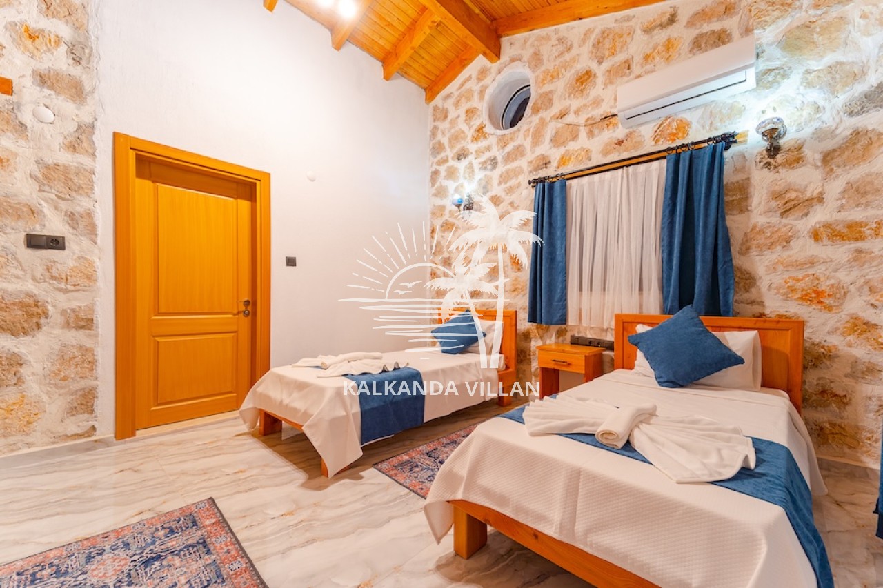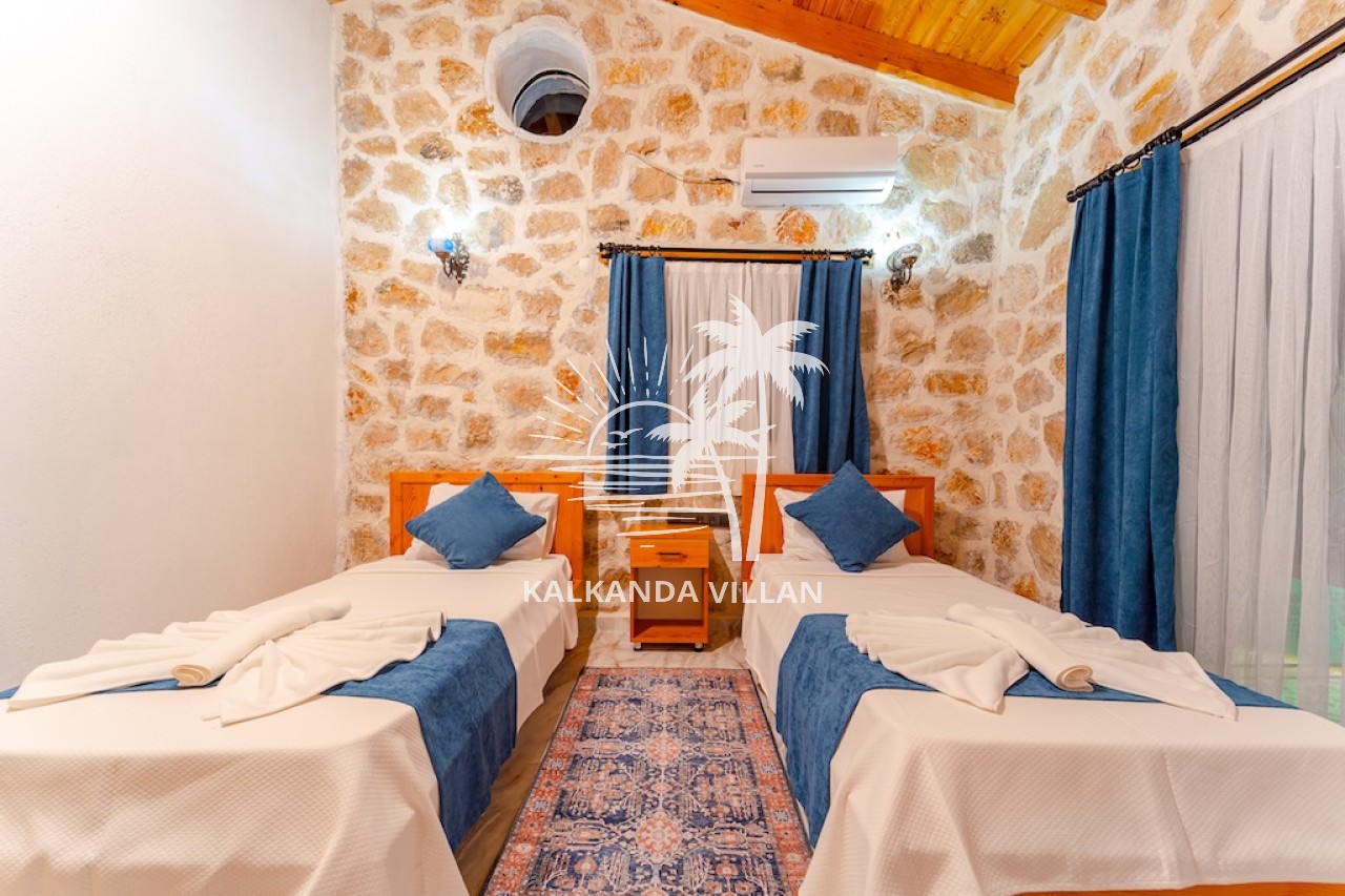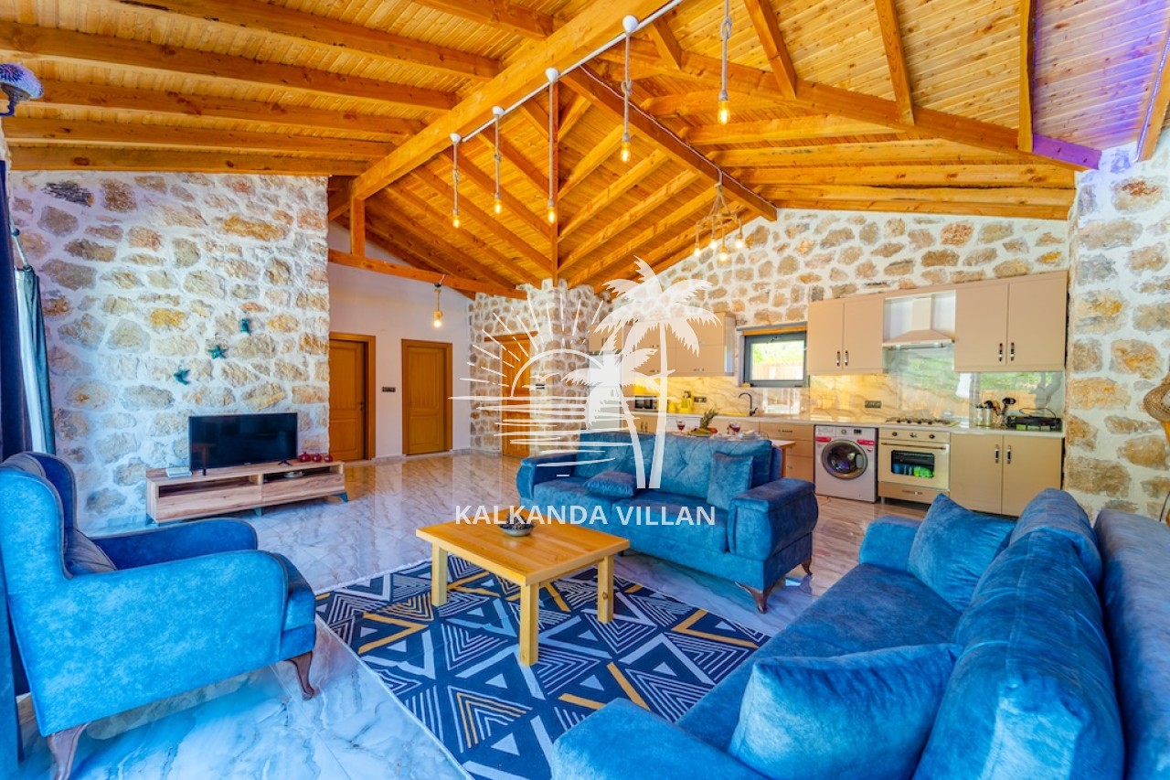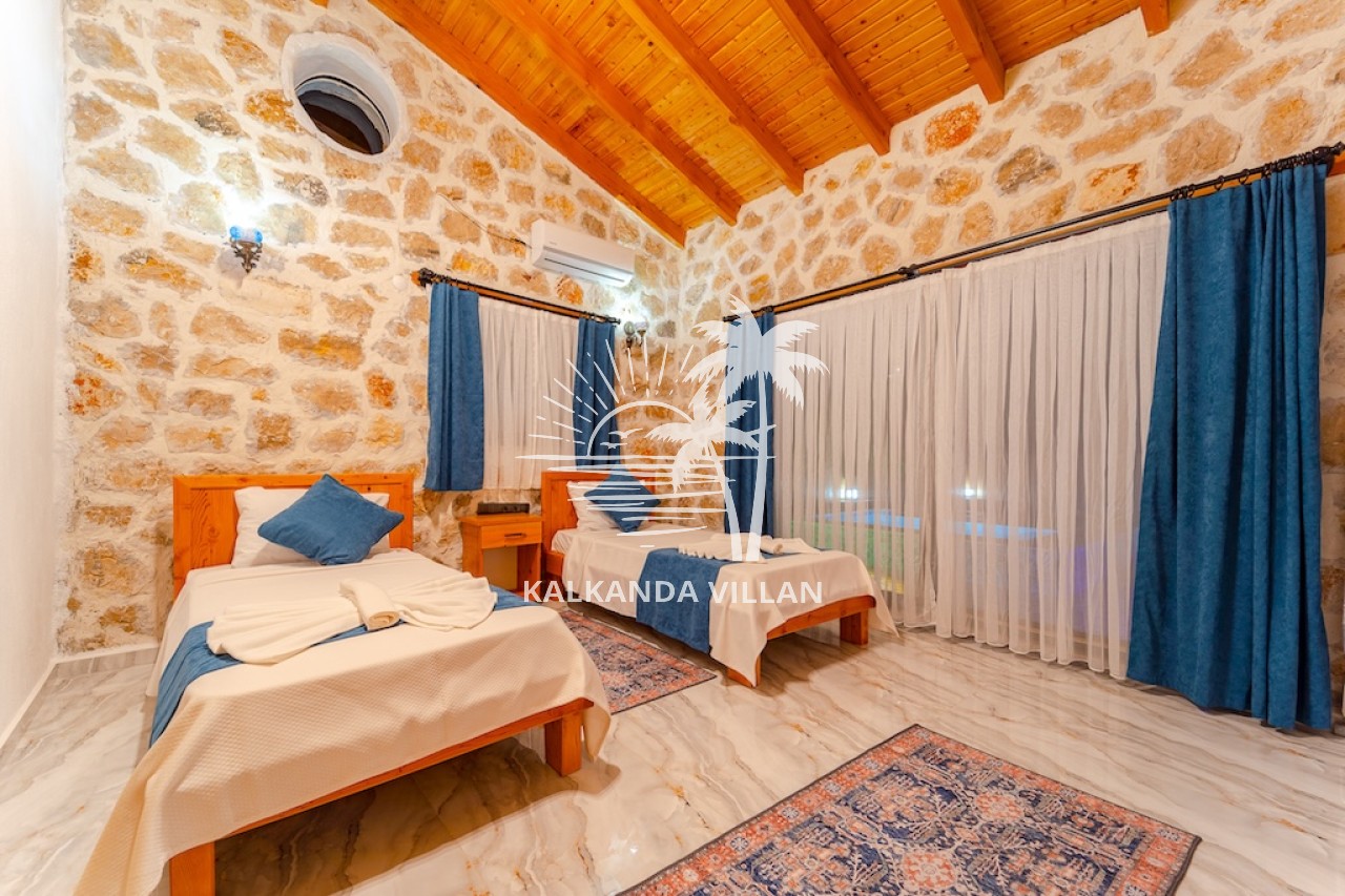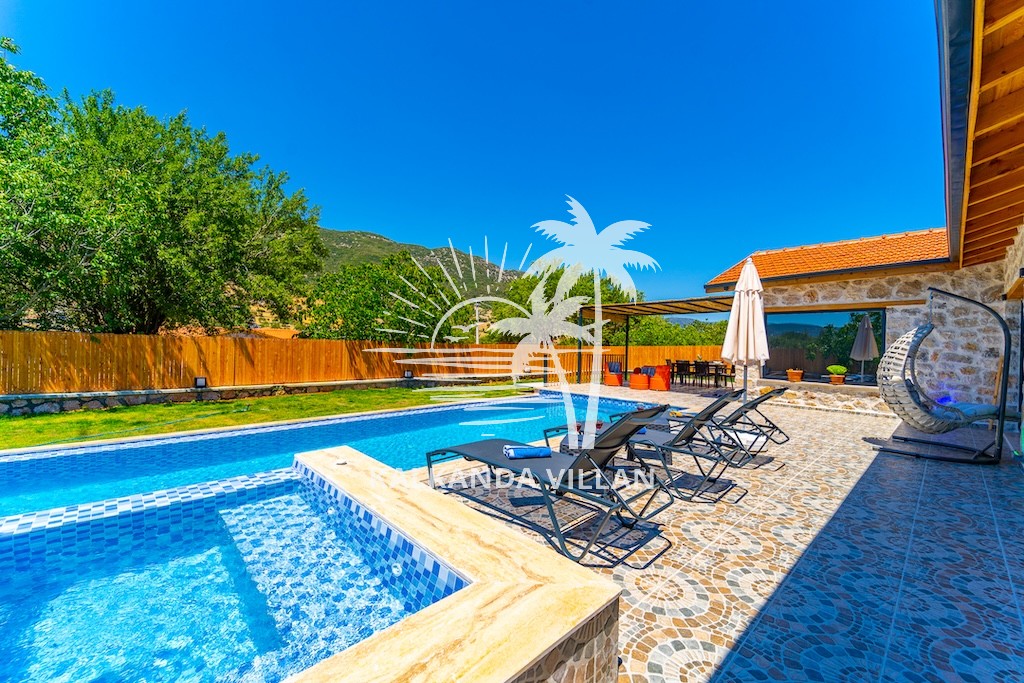 Die Villa Cevizici ist eine geräumige und komfortable Ferienvilla in Sarıbelen, einem beliebten Ferienort in Kalkan, Antalya, inmitten herrlicher Natur. Die Villa besticht durch ihre Architektur aus Stein und Holz und bietet mit ihrer modernen Einrichtung und der ruhigen Atmosphäre unvergessliche Urlaubsmomente. Sie verfügt über zwei Schlafzimmer und zwei Badezimmer und bietet Platz für bis zu vier Personen – ideal für kleine Familien oder Freundesgruppen. Genießen Sie die Natur im Freien mit privatem Pool, separatem Kinderbecken, Poolterrasse und Sonnenliegebereich. Die moderne amerikanische Küche und das großzügige Wohnzimmer der Villa Cevizici sorgen für ein komfortables Ambiente. Der private Poolbereich, die Grillmöglichkeiten und der Blick in die Natur schaffen die perfekte Kulisse für einen erholsamen Urlaub. Die Villa Cevizici ist die ideale Wahl für alle, die eine Ferienvilla in Kalkan Sarıbelen suchen und Natur, Privatsphäre und Komfort in einem genießen möchten.