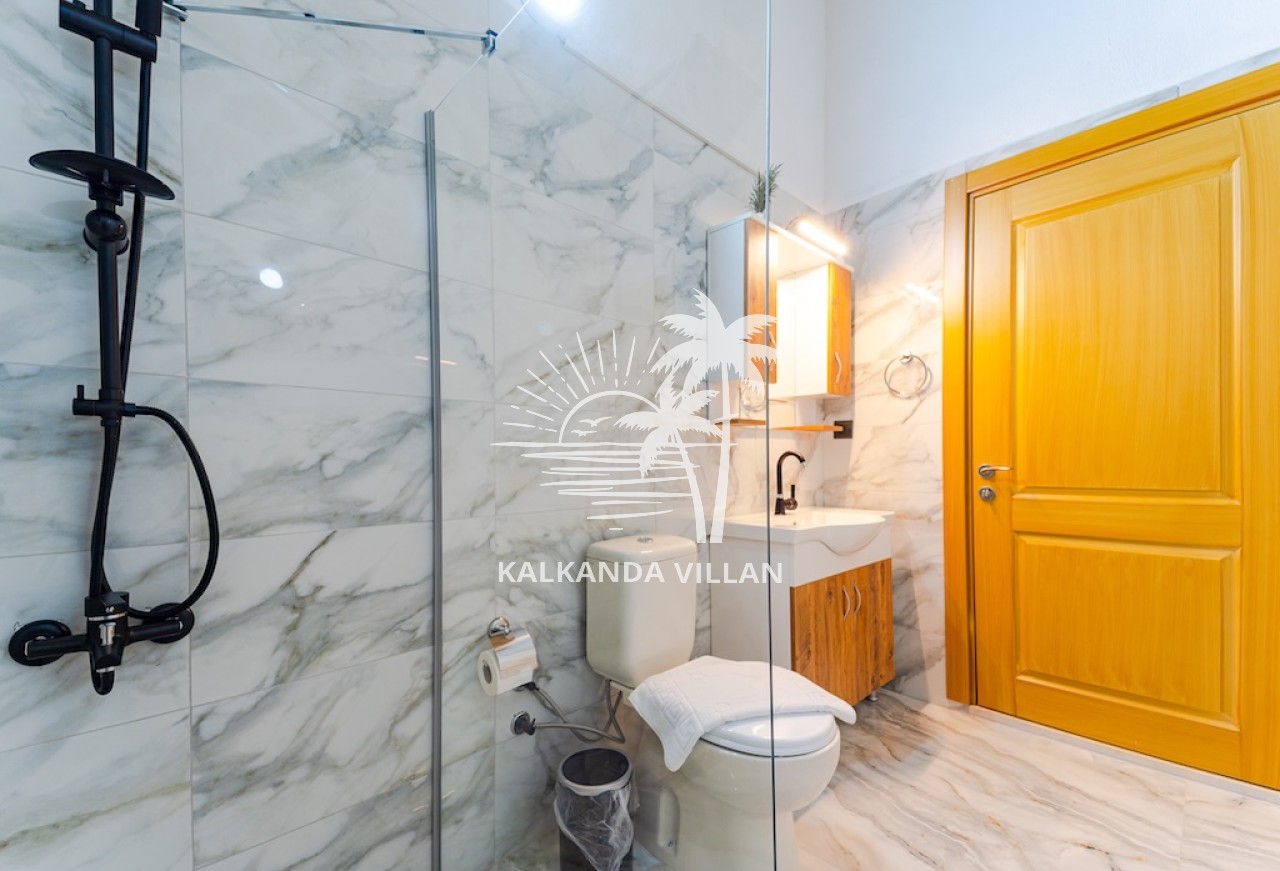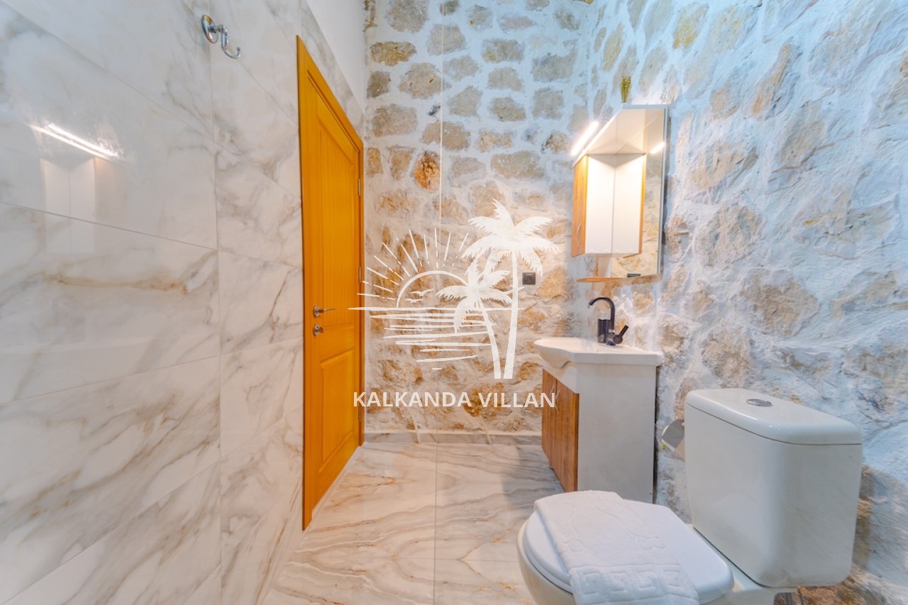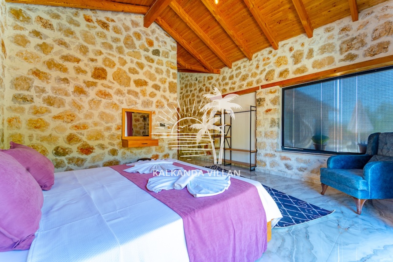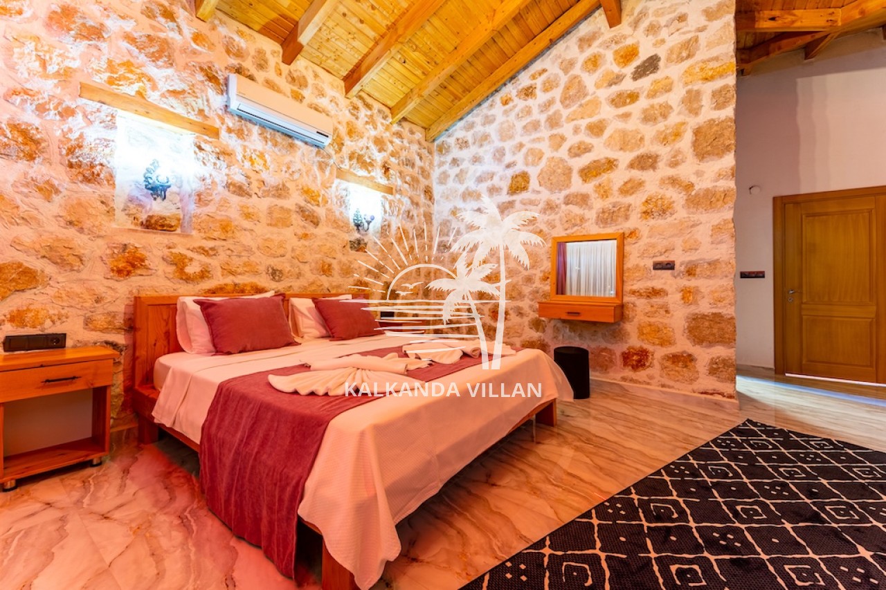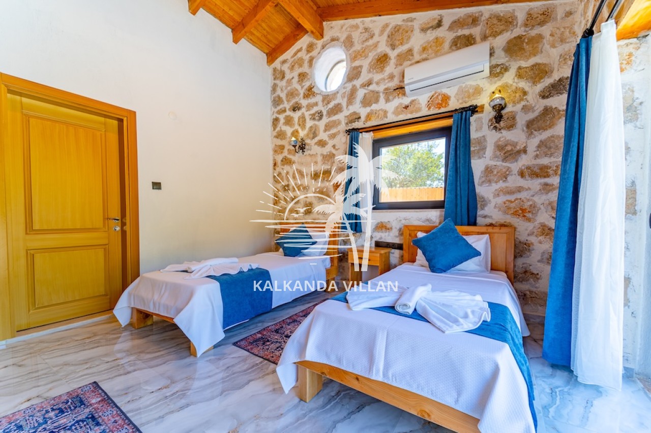 Die Villa Cevizici ist eine geräumige und komfortable Ferienvilla in Sarıbelen, einem beliebten Ferienort in Kalkan, Antalya, inmitten herrlicher Natur. Die Villa besticht durch ihre Architektur aus Stein und Holz und bietet mit ihrer modernen Einrichtung und der ruhigen Atmosphäre unvergessliche Urlaubsmomente. Sie verfügt über zwei Schlafzimmer und zwei Badezimmer und bietet Platz für bis zu vier Personen – ideal für kleine Familien oder Freundesgruppen. Genießen Sie die Natur im Freien mit privatem Pool, separatem Kinderbecken, Poolterrasse und Sonnenliegebereich. Die moderne amerikanische Küche und das großzügige Wohnzimmer der Villa Cevizici sorgen für ein komfortables Ambiente. Der private Poolbereich, die Grillmöglichkeiten und der Blick in die Natur schaffen die perfekte Kulisse für einen erholsamen Urlaub. Die Villa Cevizici ist die ideale Wahl für alle, die eine Ferienvilla in Kalkan Sarıbelen suchen und Natur, Privatsphäre und Komfort in einem genießen möchten.