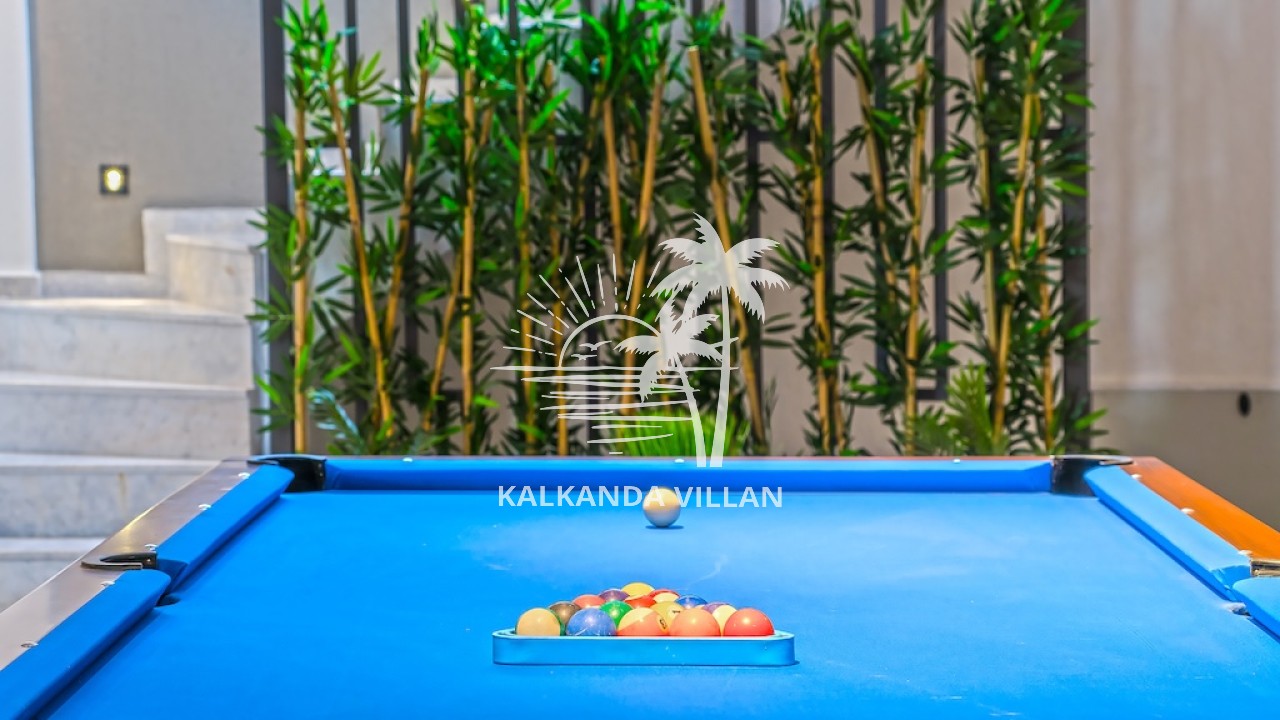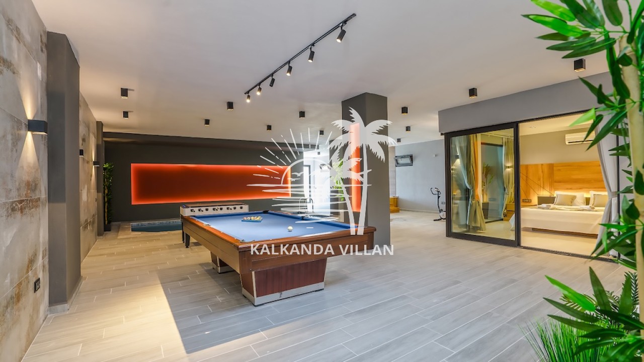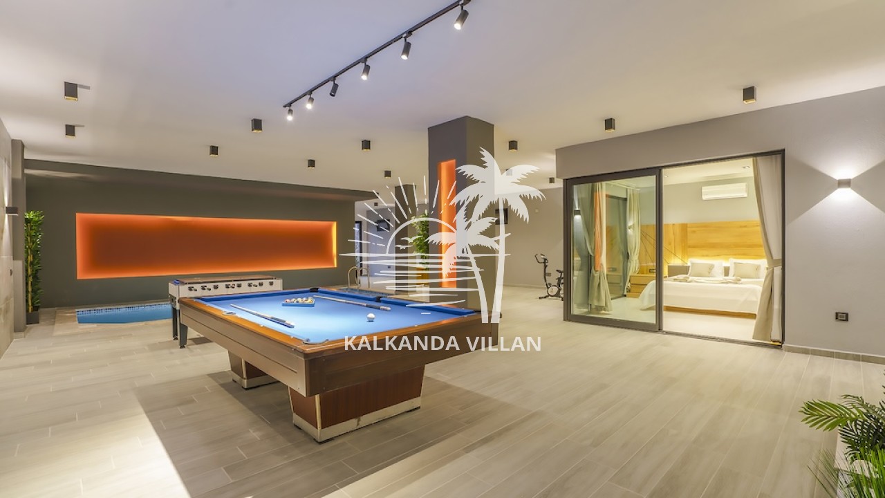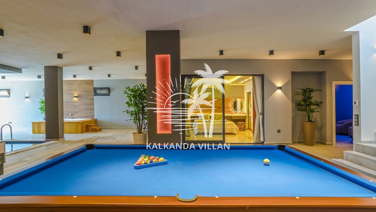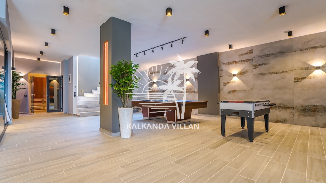 Ein besonderes Highlight der Villa ist der Innenpool, der ganzjährig Badespaß ermöglicht. Er ist perfekt für Gäste, die auch bei kühlerem Wetter nicht auf das Schwimmen verzichten möchten. Zusammen mit Sauna und Türkischem Bad bietet er ein einzigartiges Wellness-Erlebnis. Wer sich entspannen und einen rundum erholsamen Urlaub verbringen möchte, findet in der Villa Hedef unvergleichlichen Komfort. Die Spiel- und Unterhaltungsbereiche der Villa sorgen zudem für vergnügliche Momente für Groß und Klein.