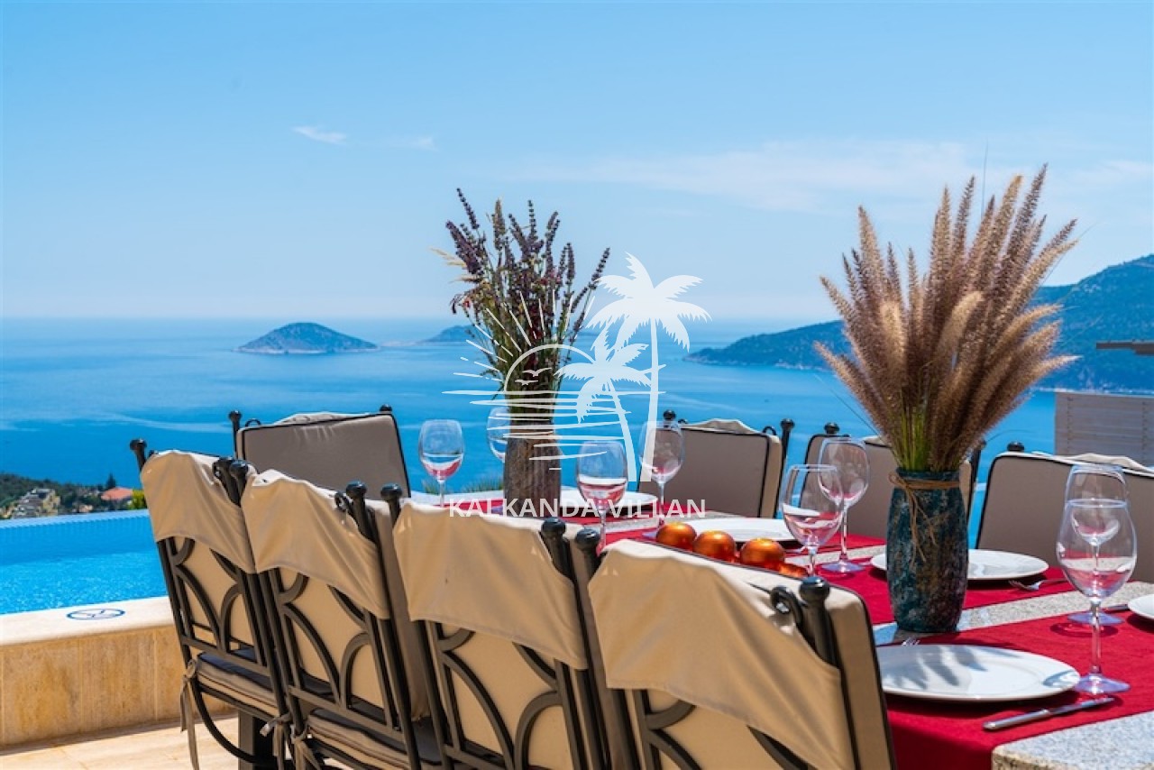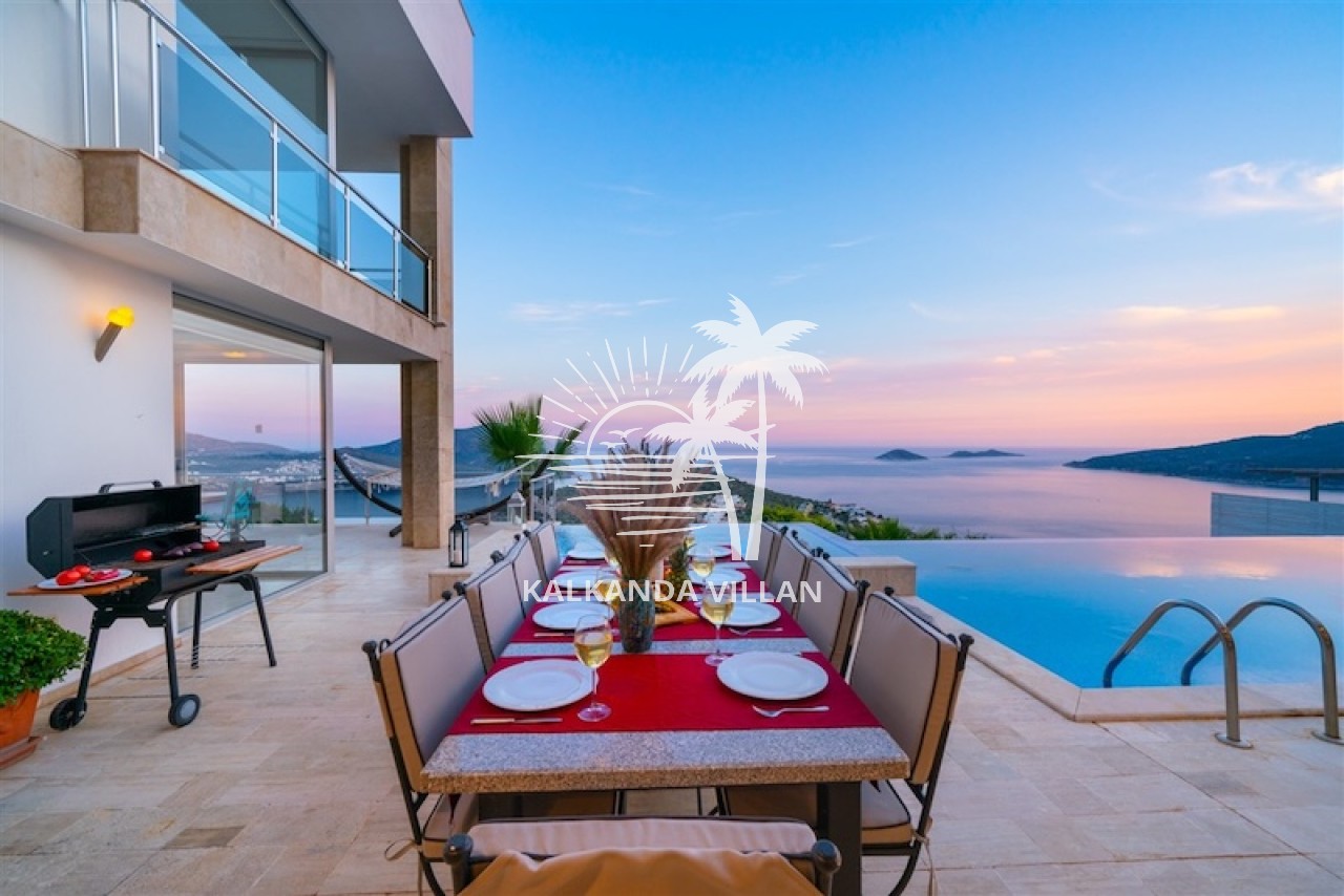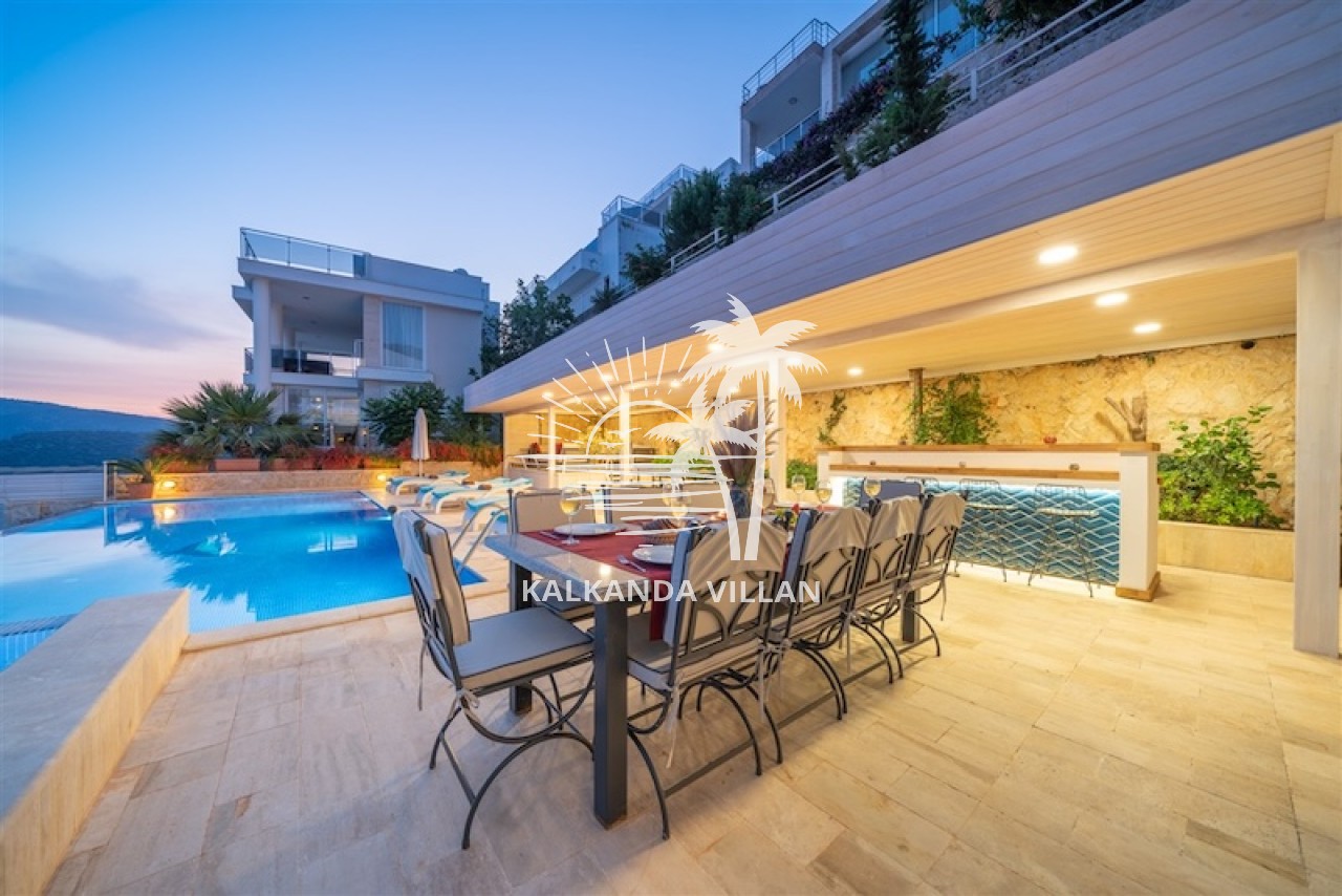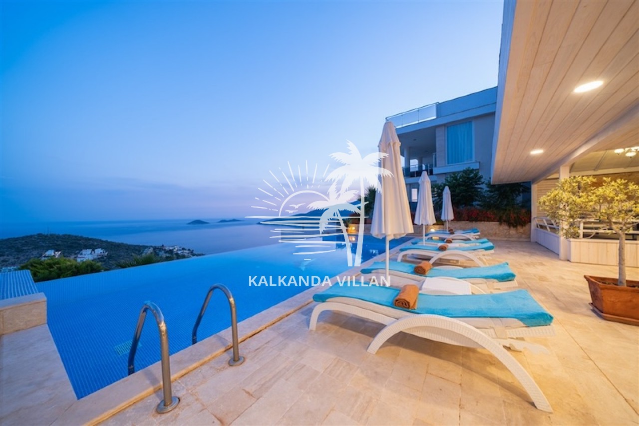 Die Villa Kayra liegt im exklusiven Viertel Kalamar in Kalkan und ist eine einzigartige Luxusvilla, die sich durch ihre moderne Architektur, großzügige Wohnbereiche und einen atemberaubenden Panoramablick auf das Meer auszeichnet. Mit insgesamt sechs Schlafzimmern und einer Kapazität für bis zu zwölf Personen bietet sie die ideale Unterkunft für große Familien und Freundesgruppen.