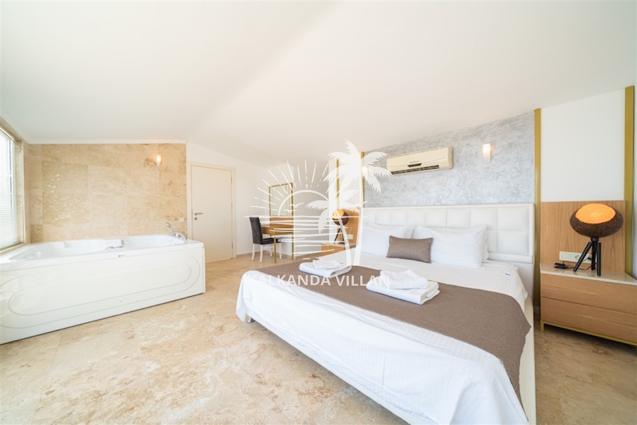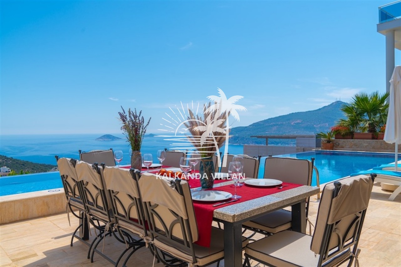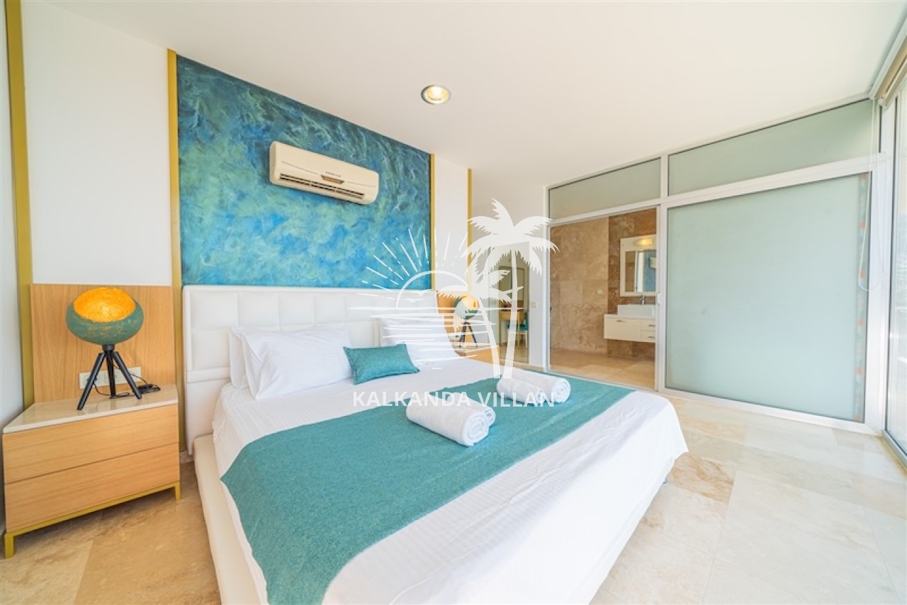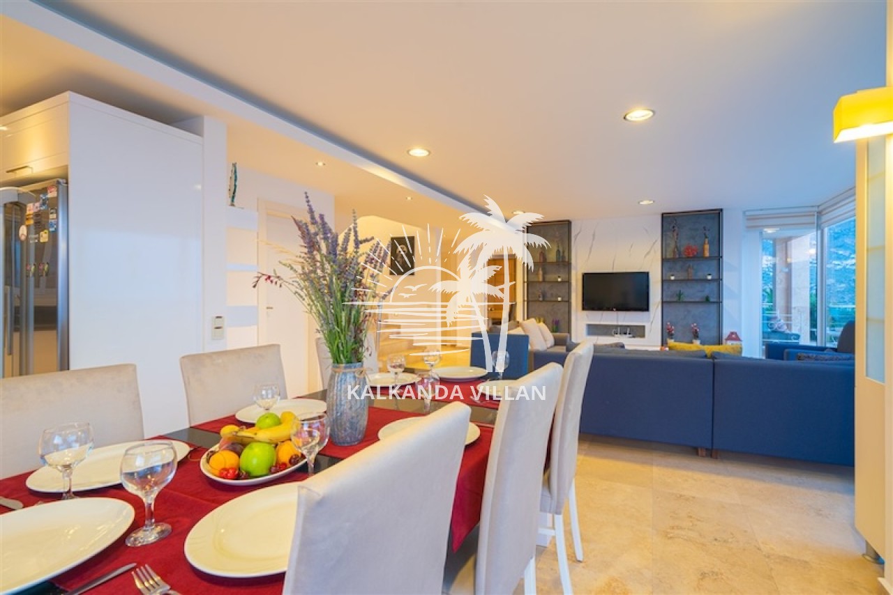 Die Villa Kayra liegt im exklusiven Viertel Kalamar in Kalkan und ist eine einzigartige Luxusvilla, die sich durch ihre moderne Architektur, großzügige Wohnbereiche und einen atemberaubenden Panoramablick auf das Meer auszeichnet. Mit insgesamt sechs Schlafzimmern und einer Kapazität für bis zu zwölf Personen bietet sie die ideale Unterkunft für große Familien und Freundesgruppen.