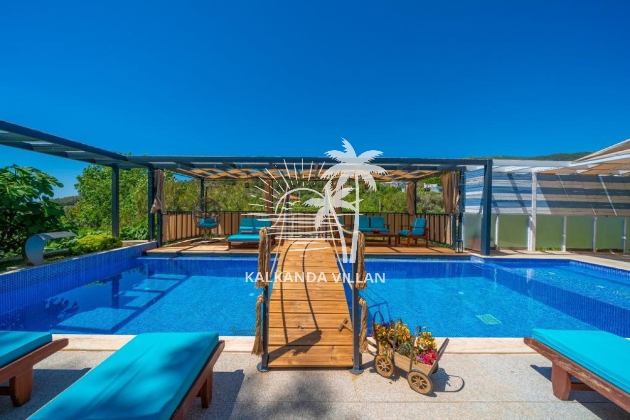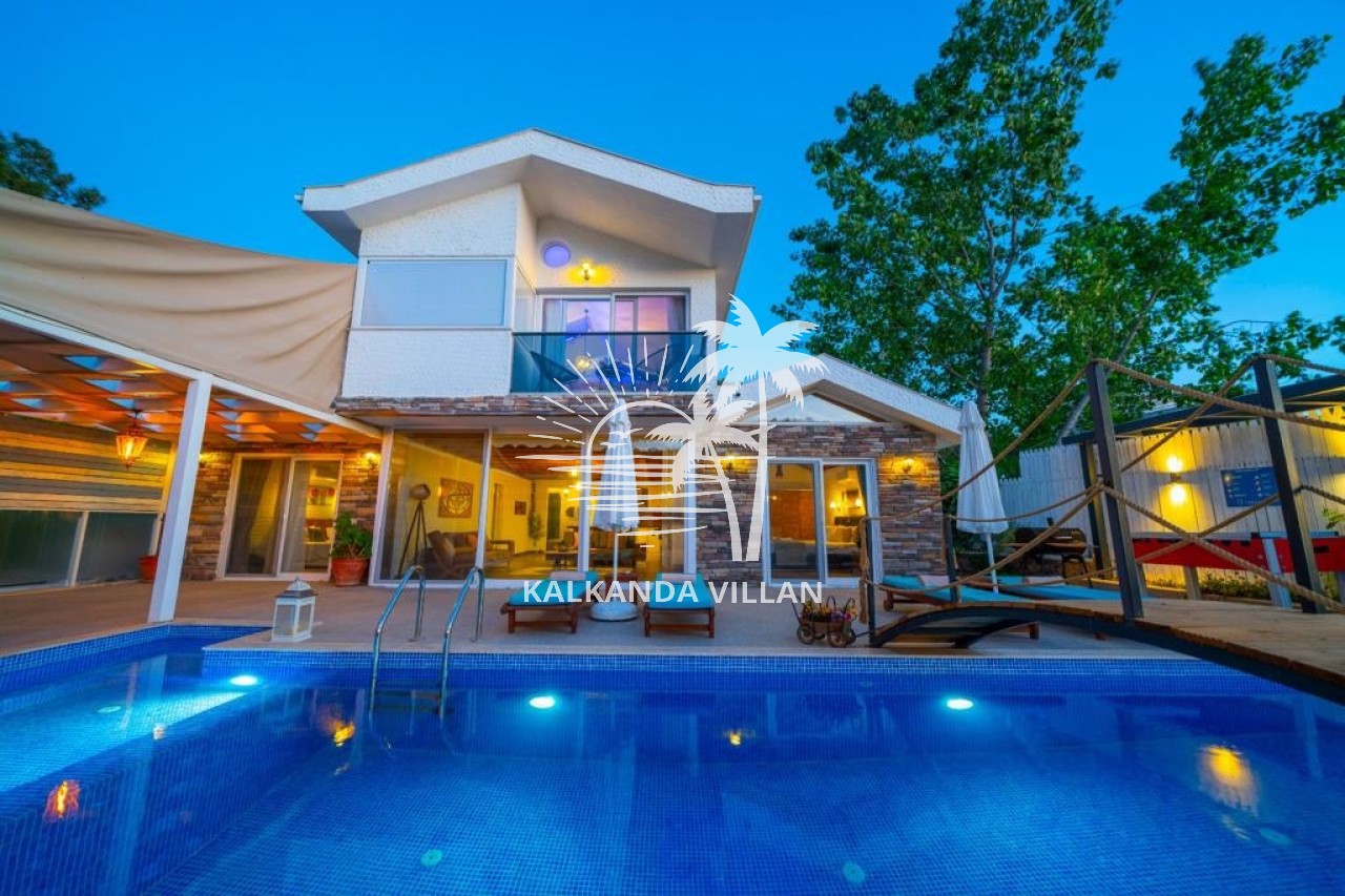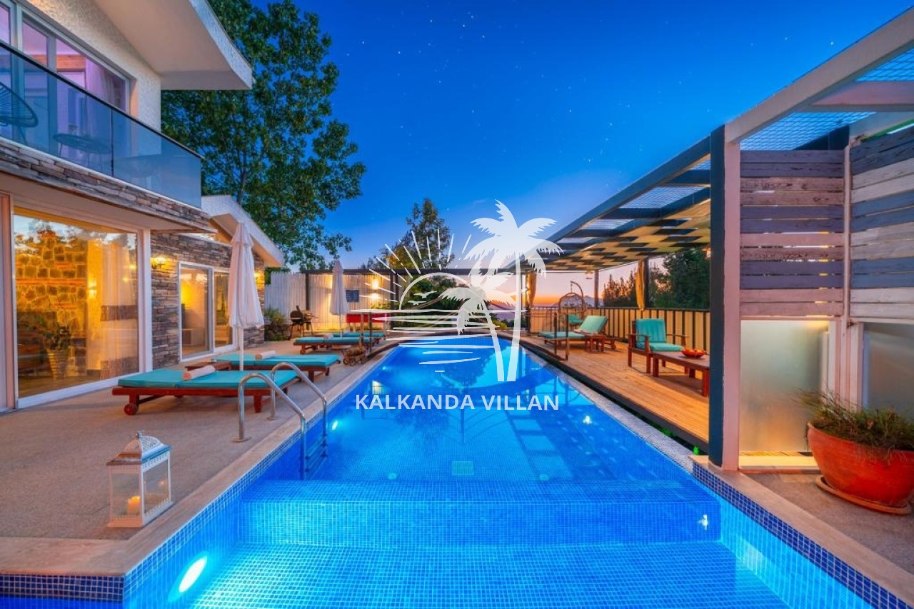 Die Villa Stella ist eine luxuriöse Villa mit drei Schlafzimmern für bis zu sechs Personen in der ruhigen Gegend von İslamlar in Kalkan. Sie besticht durch ihre moderne Architektur und komfortable Ausstattung. Familien und Freundesgruppen, die einen ruhigen und ungestörten Urlaub inmitten der Natur verbringen möchten, finden hier den idealen Ort. Der großzügige Garten, der private Swimmingpool und die komplett abgeschiedene Sonnenterrasse bieten Gästen absolute Privatsphäre.