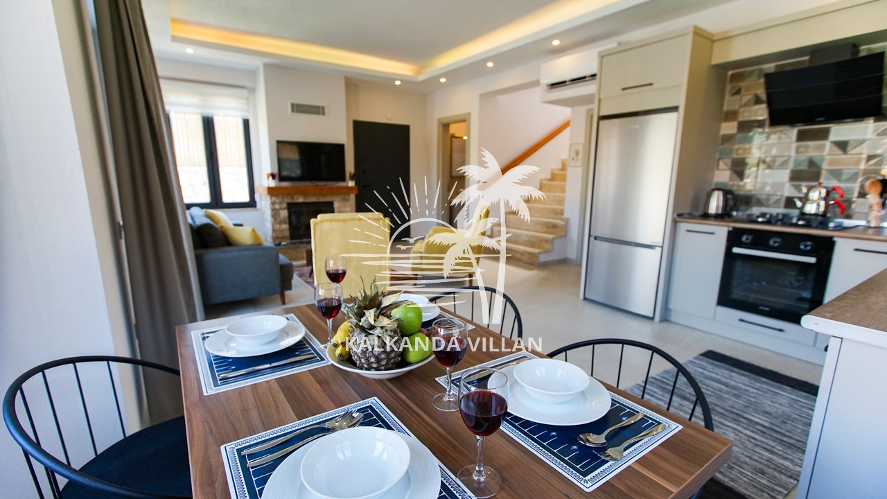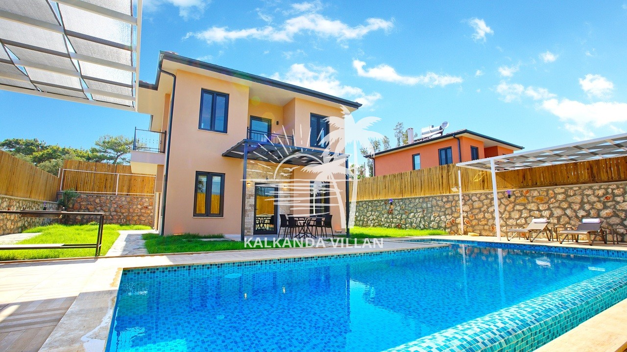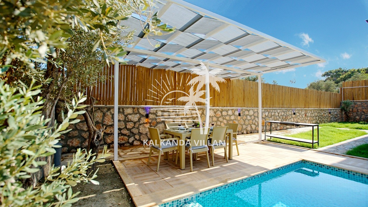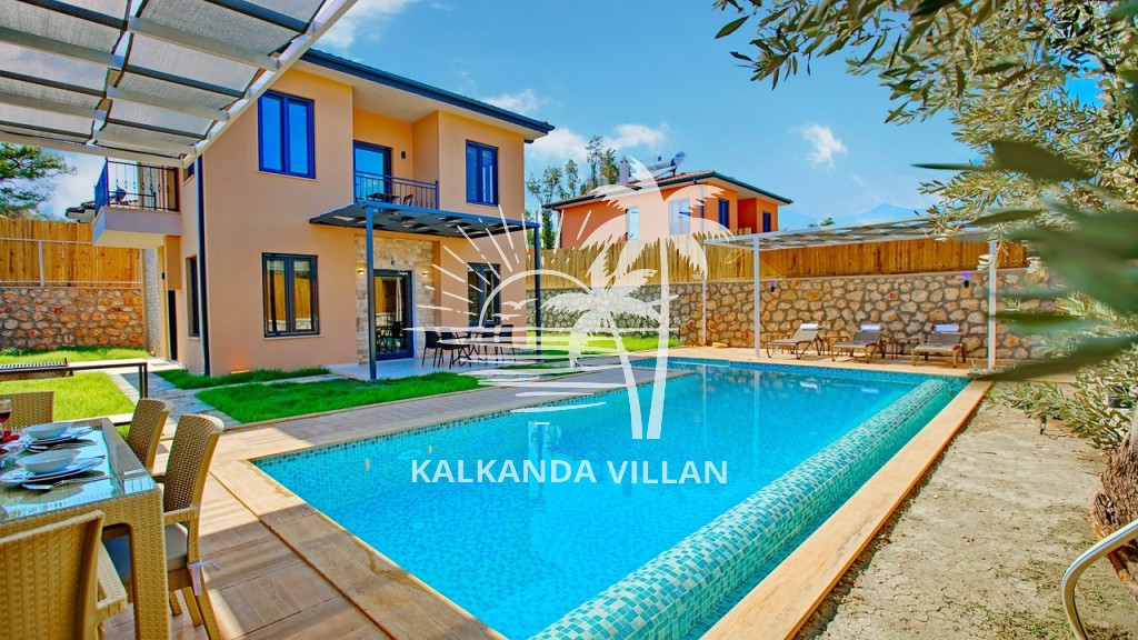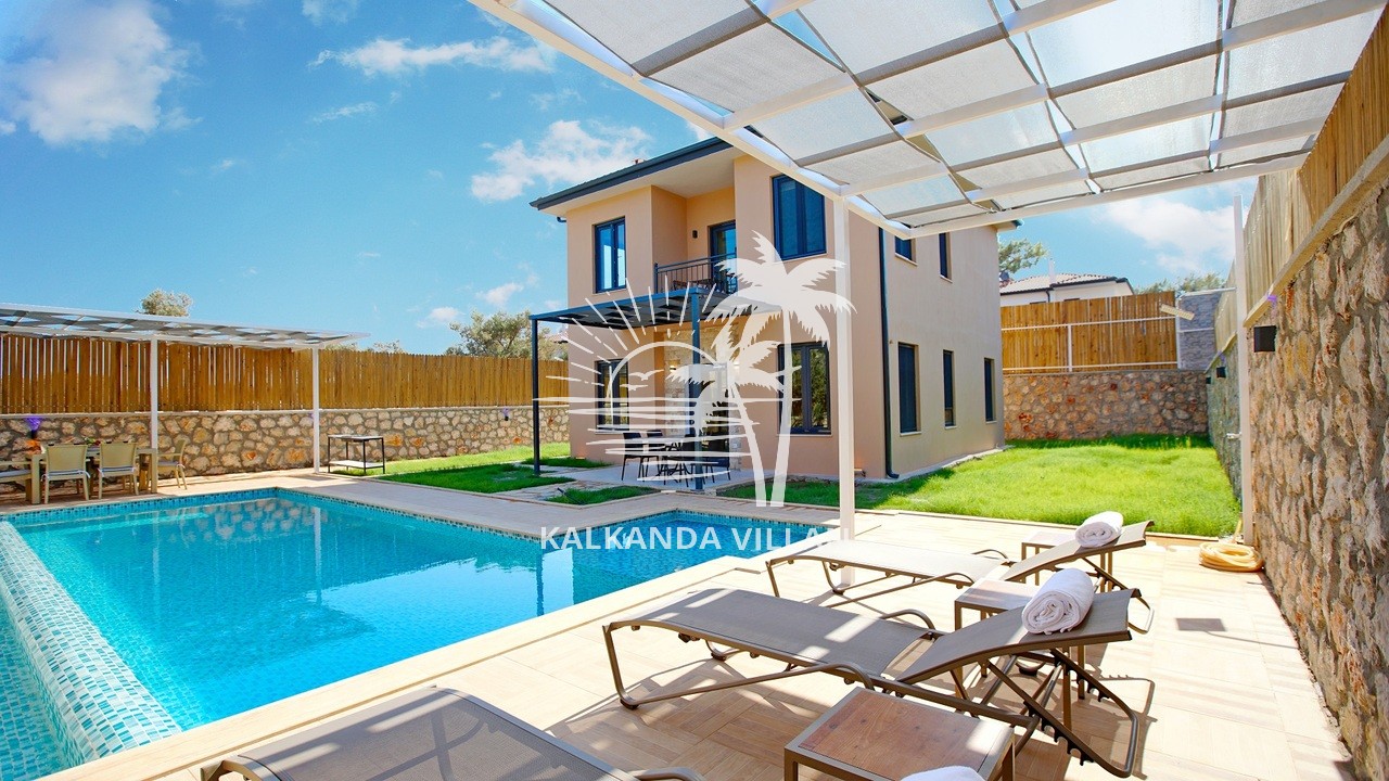 It offers a complete accommodation experience with its spacious garden area, private swimming pool, airy living spaces, and fully equipped kitchen. Its proximity to Patara Beach provides a combination of nature, sea, and tranquility.