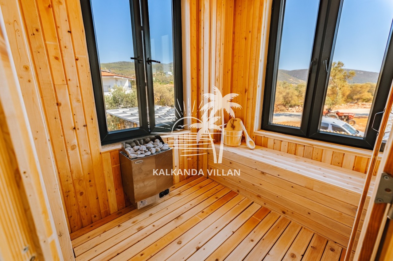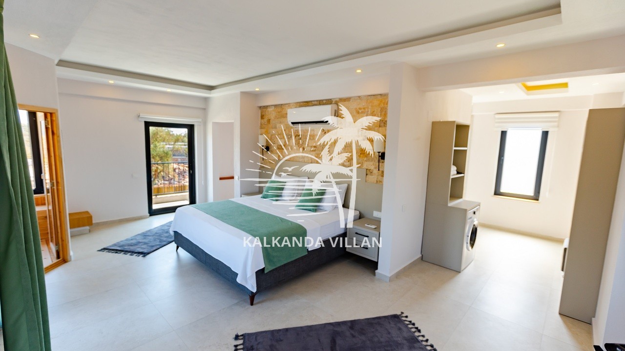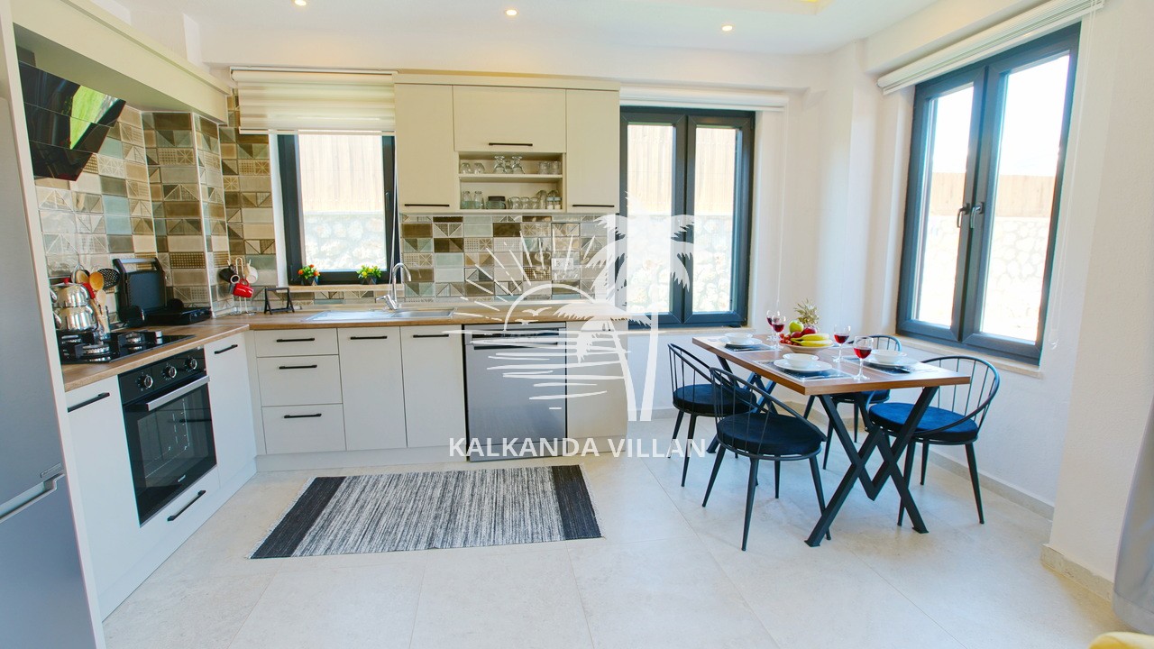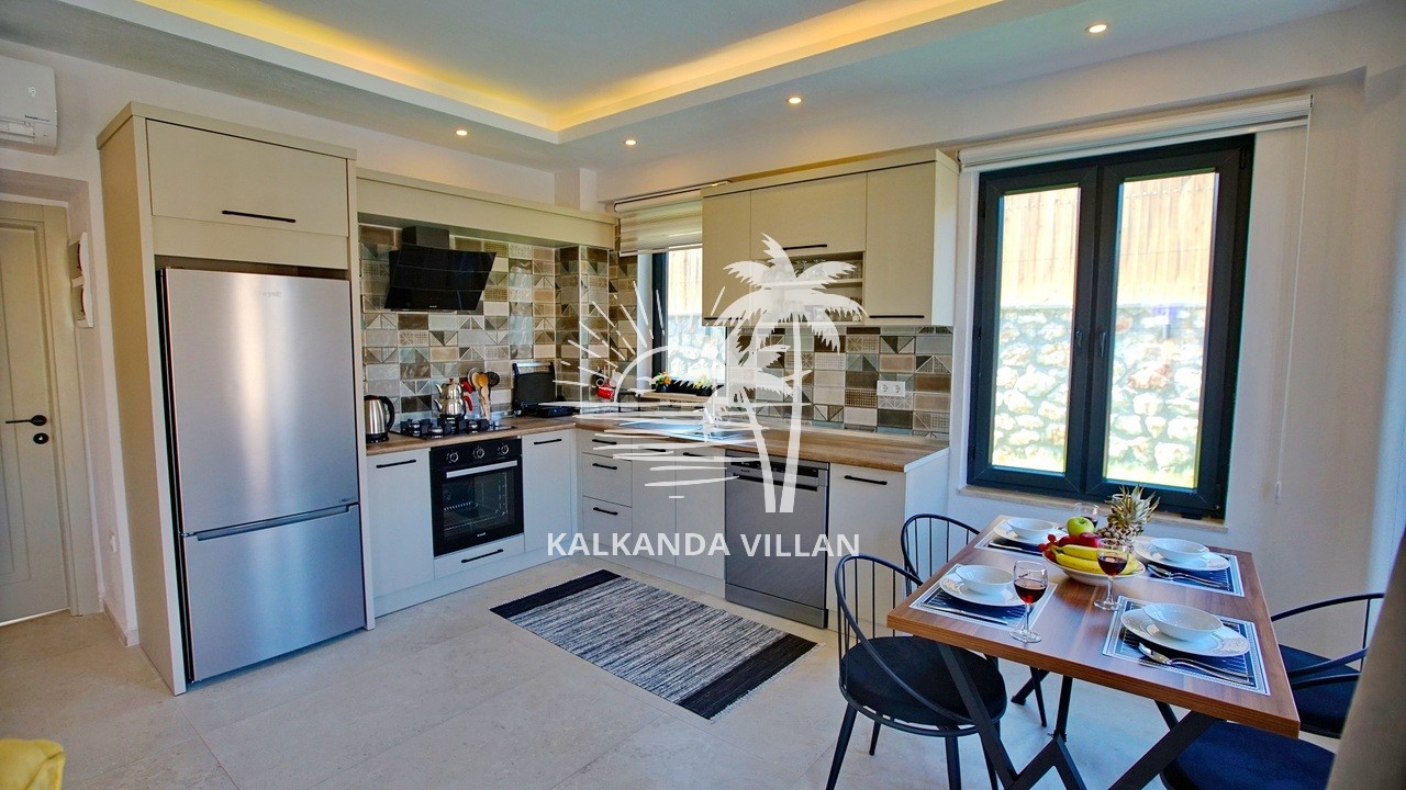 It offers a complete accommodation experience with its spacious garden area, private swimming pool, airy living spaces, and fully equipped kitchen. Its proximity to Patara Beach provides a combination of nature, sea, and tranquility.