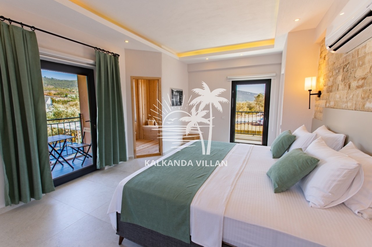 Villa Ersan 3, nestled in a peaceful atmosphere surrounded by olive trees, offers an ideal escape for those seeking a comfortable holiday in Patara, Kaş. With two bedrooms and a capacity for four people, this stylish villa is a perfect option for families and couples, notable for its stone architecture and modern design.