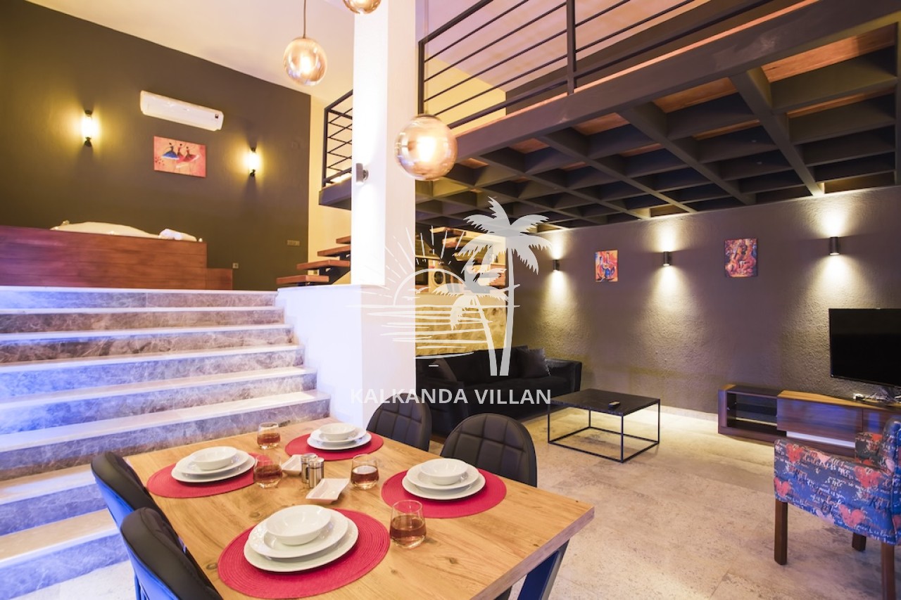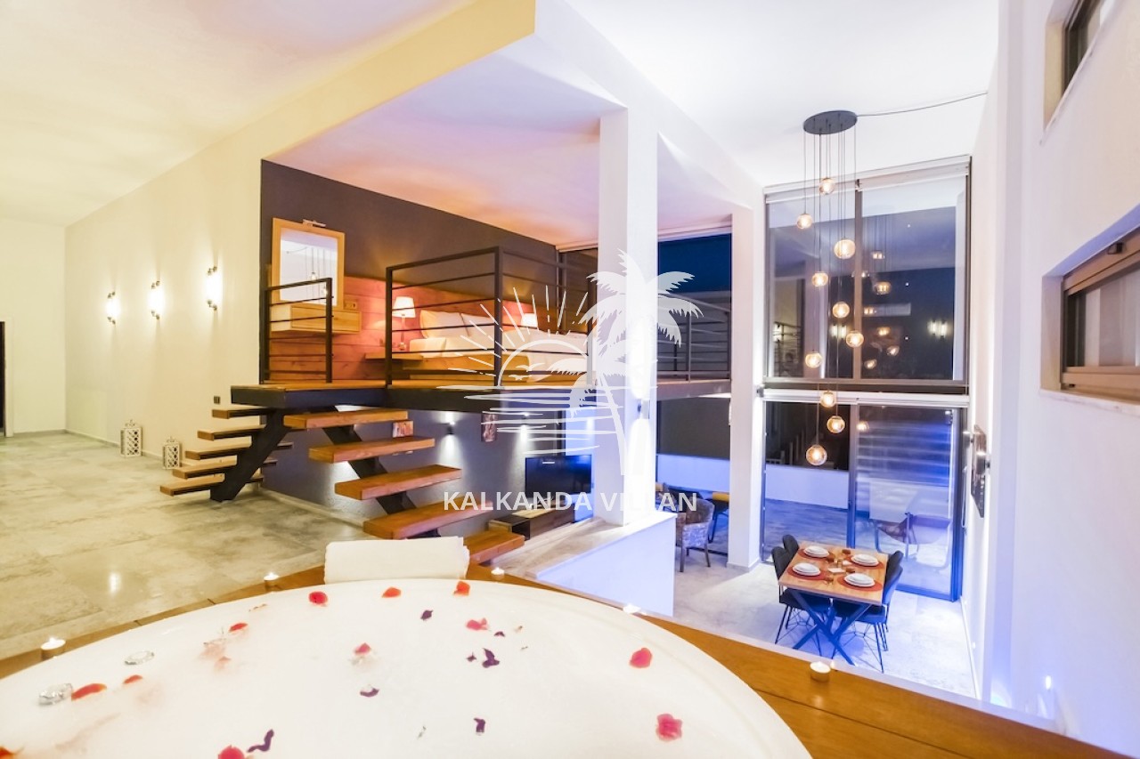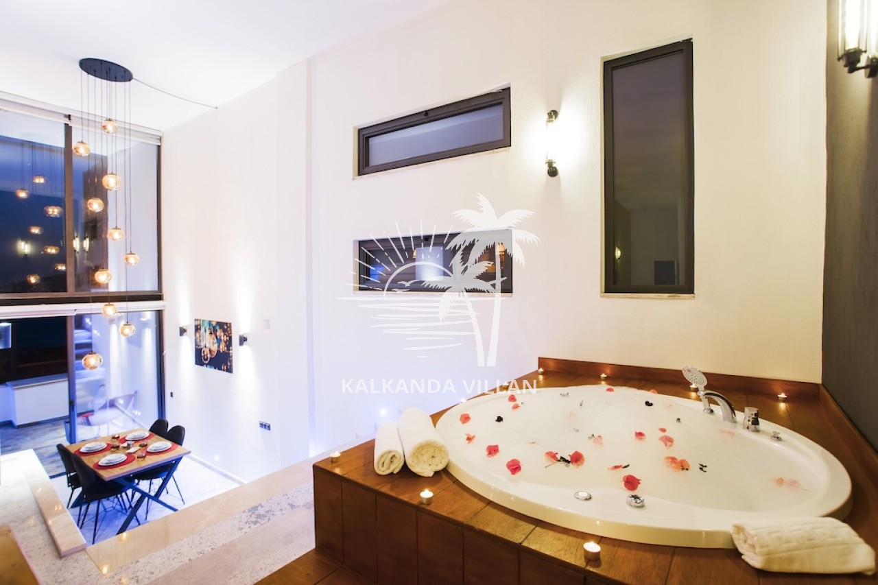 With its sheltered private swimming pool, jacuzzi, and comfortable living spaces, the villa offers its guests privacy and comfort, providing a pleasant and relaxing holiday experience. For those looking for a private pool villa for rent in Kalkan Kördere, Villa Gece is the perfect choice for a romantic and unforgettable holiday.