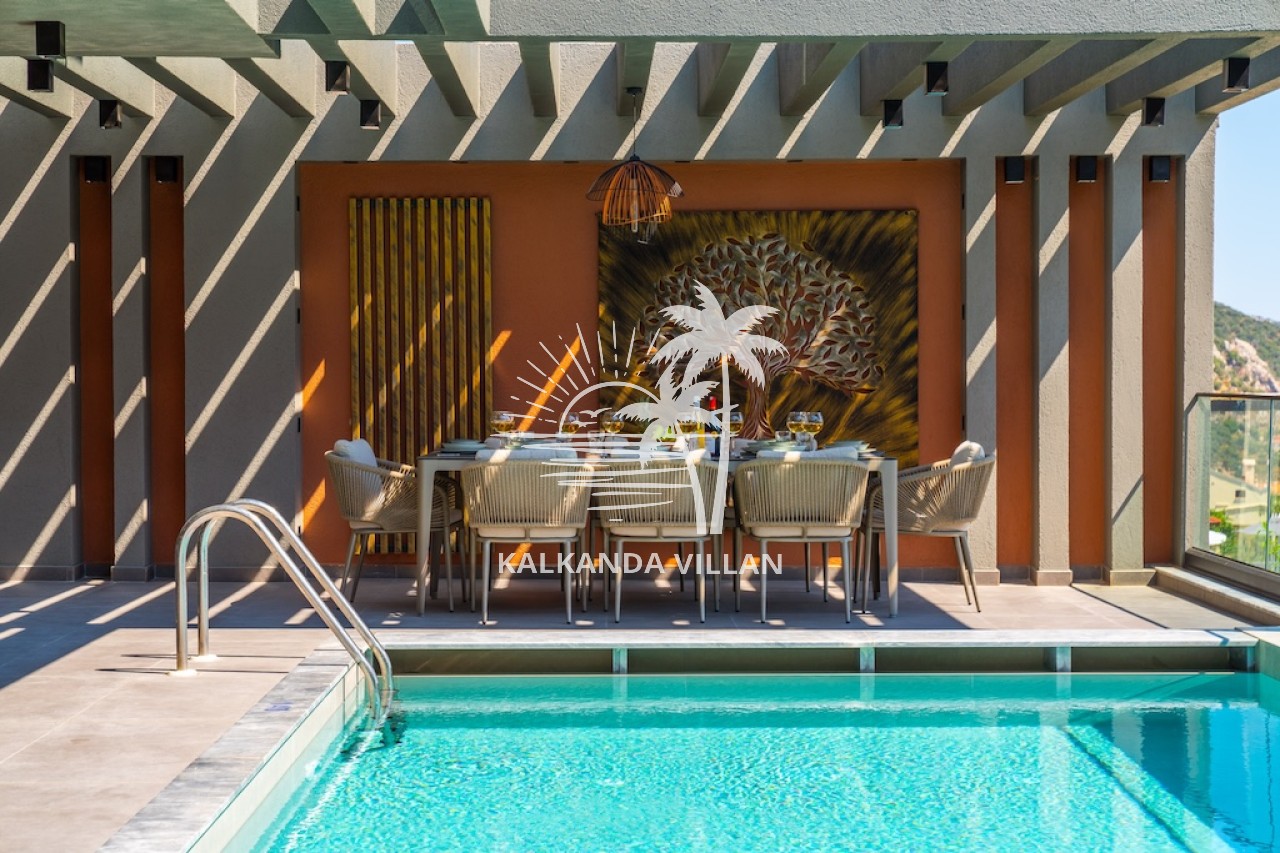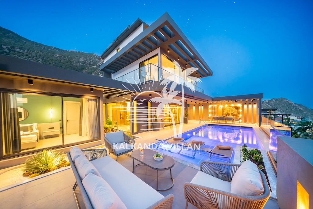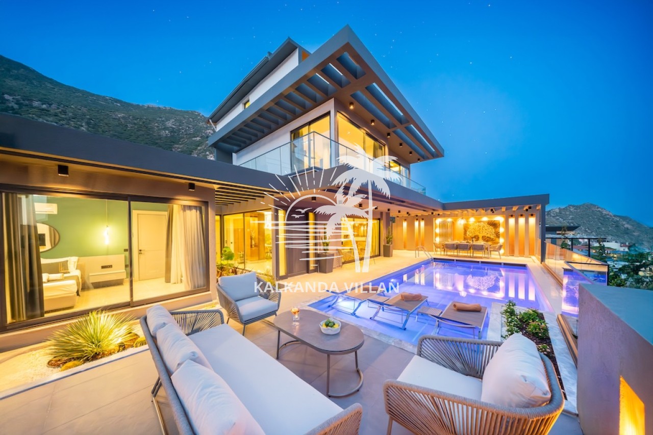 Kalkan merkezine ve plajlara yakın konumuyla Villa Nova, unutulmaz bir tatil deneyimi arayanlara hem lüks hem de doğa ile iç içe bir konaklama sunar.
