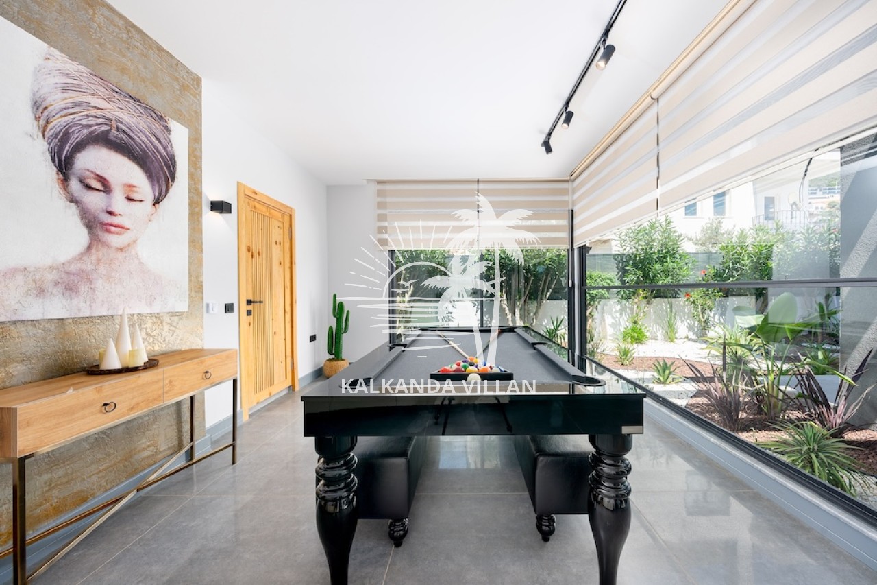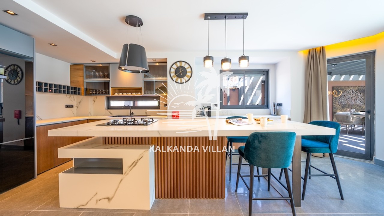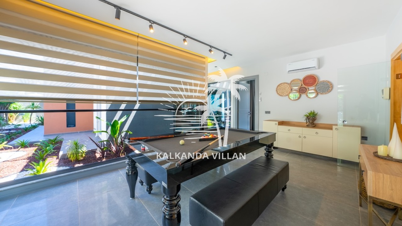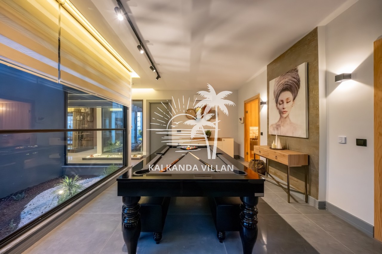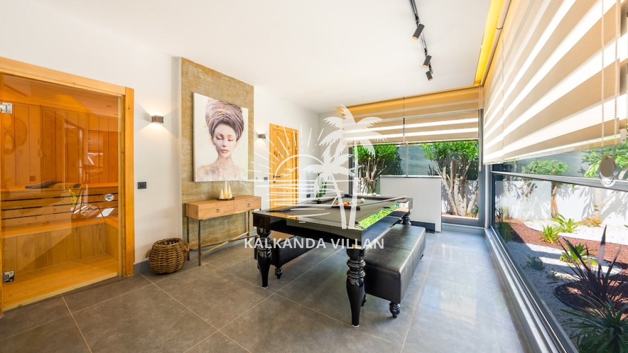 Özel yüzme havuzu, geniş terası ve panoramik Kalkan manzarasıyla Villa Nova, misafirlerine gün boyu huzur ve konfor sunar. İç mekânda tam donanımlı mutfak, ferah salon ve modern dekorasyon ön plandadır. Ayrıca villada sauna, Türk hamamı ve eğlence alanı gibi özel donanımlar da bulunur.