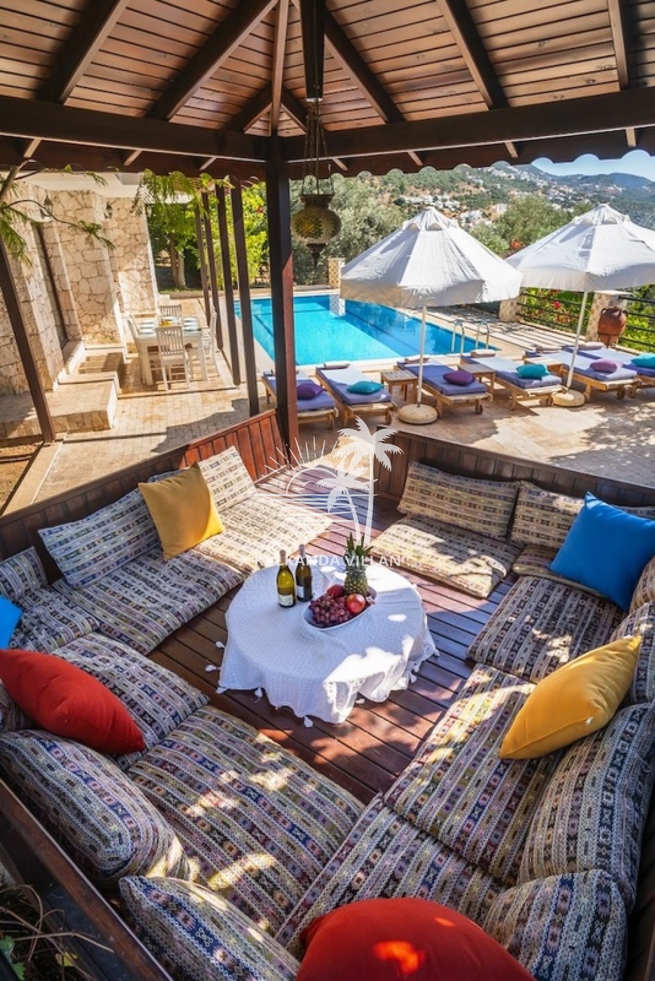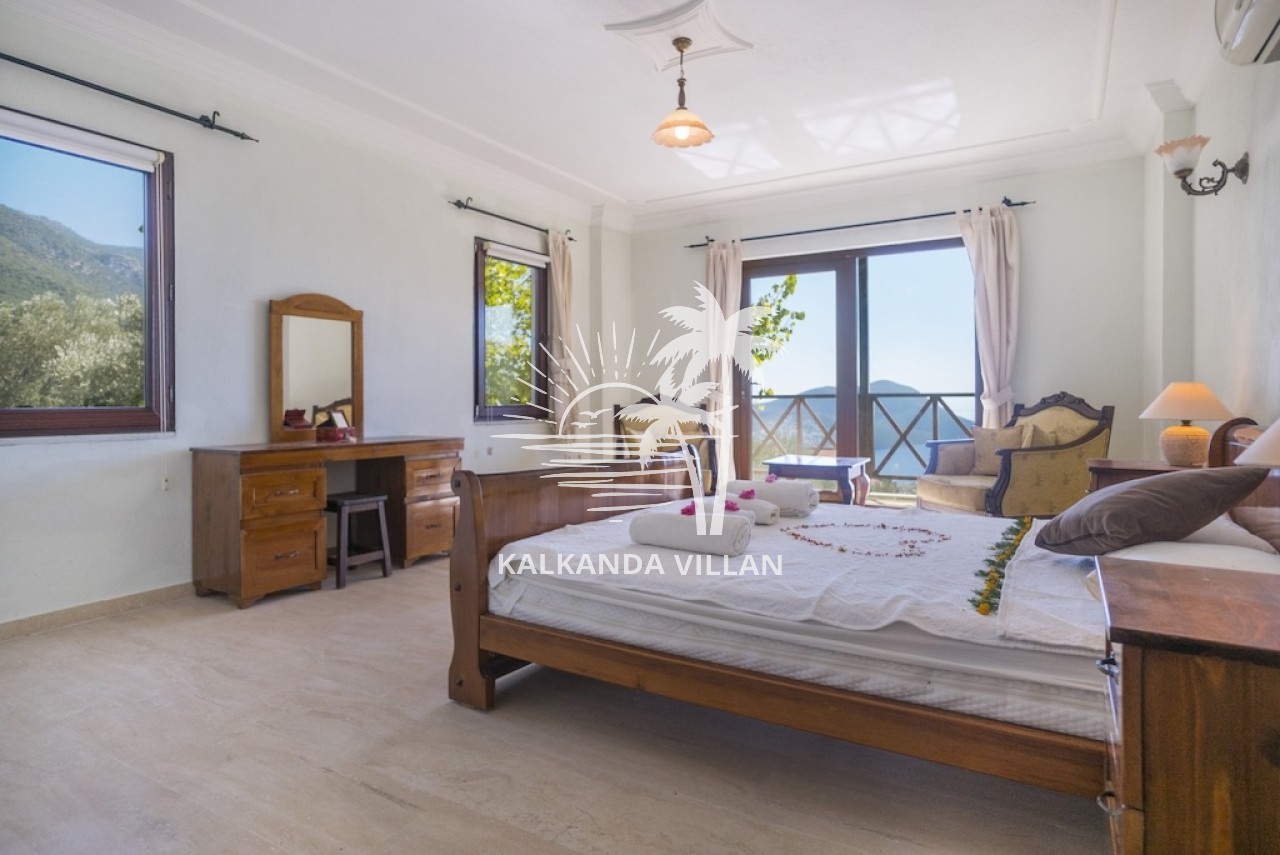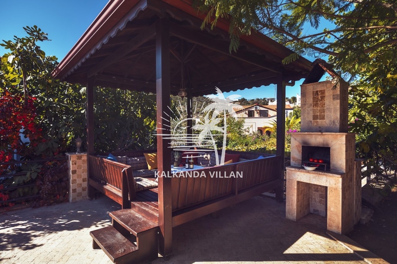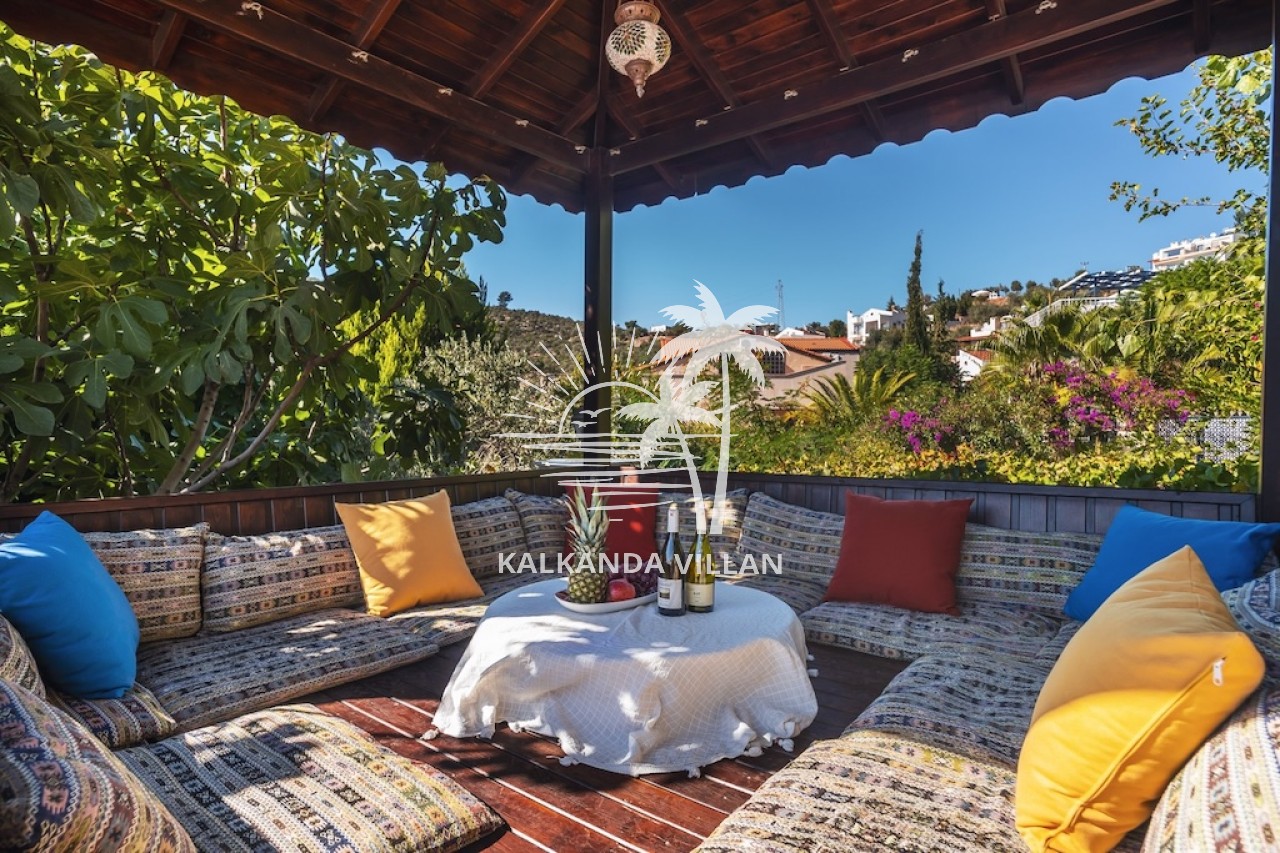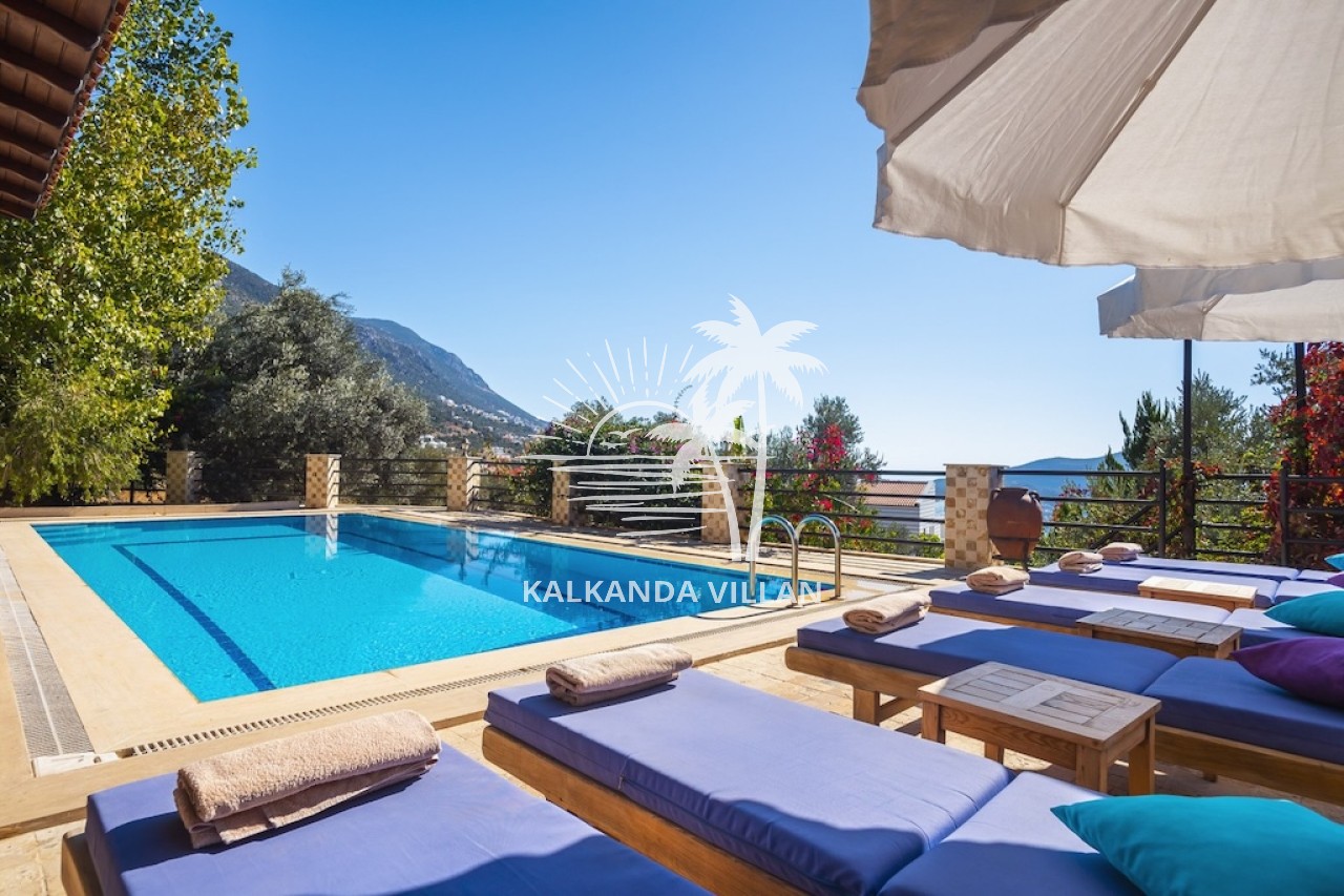 Villa Otantik’in geniş terasında özel yüzme havuzu, barbekü (BBQ) alanı, açık oturma bölümleri ve panoramik deniz manzaralı balkonlar yer alır. Akdeniz’in muhteşem manzarası eşliğinde gün batımını izlemek, sevdiklerinizle keyifli akşam yemekleri paylaşmak için mükemmel bir ortam sunar. Bu özellikler, villayı Kalkan’da deniz manzaralı kiralık villa arayanlar için cazip bir tercih haline getirir.