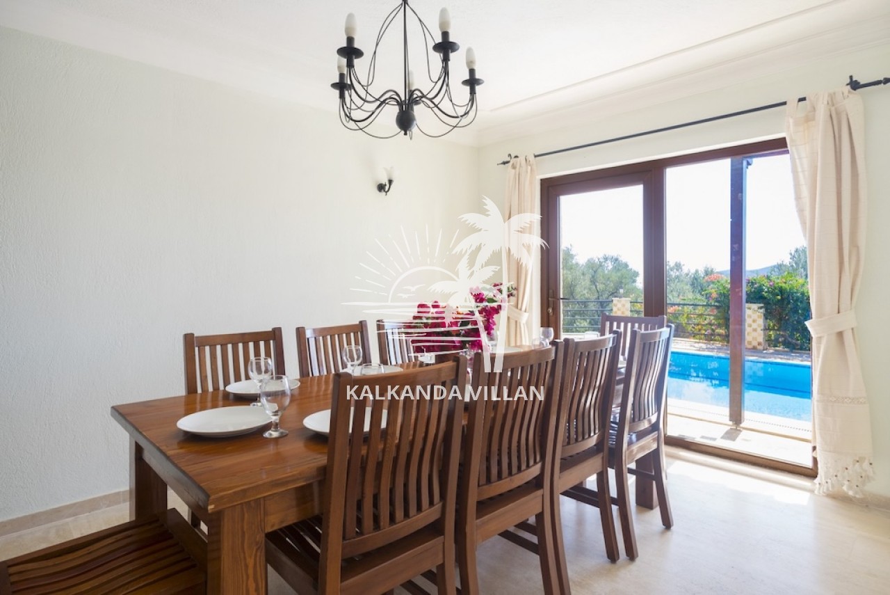 Bu tatil villasının toplamda 6 yatak odası, 5 banyosu ve 11 kişiye kadar konaklama kapasitesi bulunmaktadır. Villanın ferah iç mekânı ve büyük pencereleri sayesinde gün boyu doğal ışık alır, geniş yaşam alanında konforlu bir tatil geçirme imkânı sağlar.