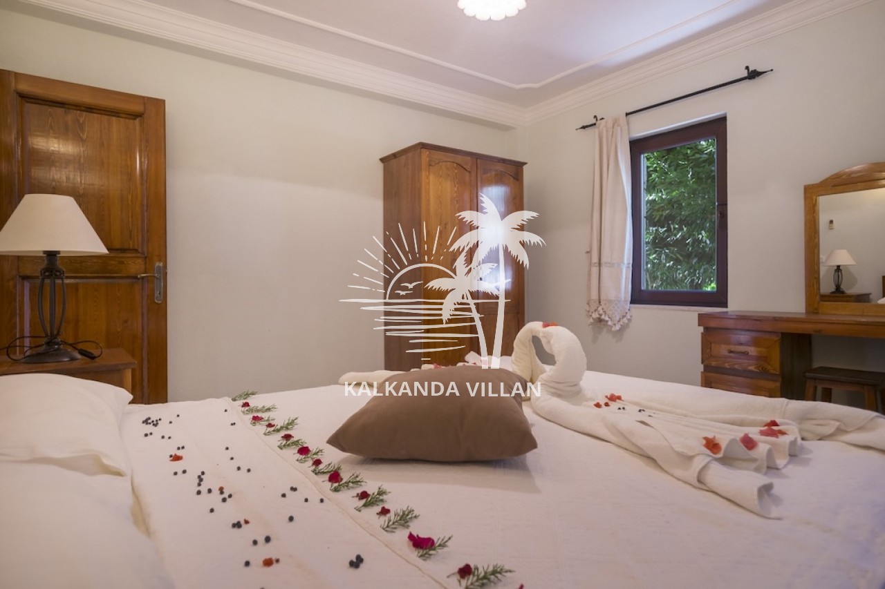 3. Yatak Odası : Çift kişilik yatak, Elbise dolabı, Komodin, Makyaj masası, Klima, Banyo, ve tuvalet bulunmaktadır.