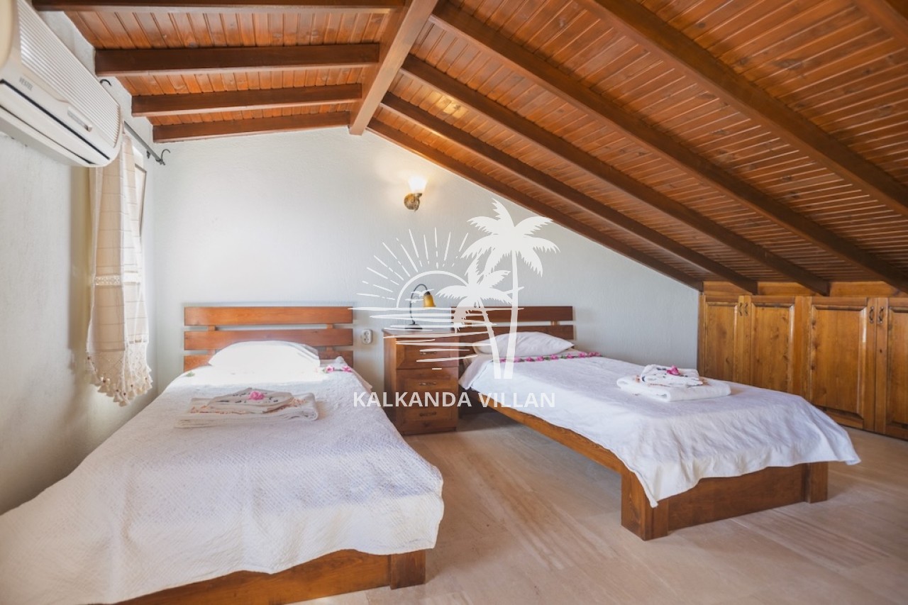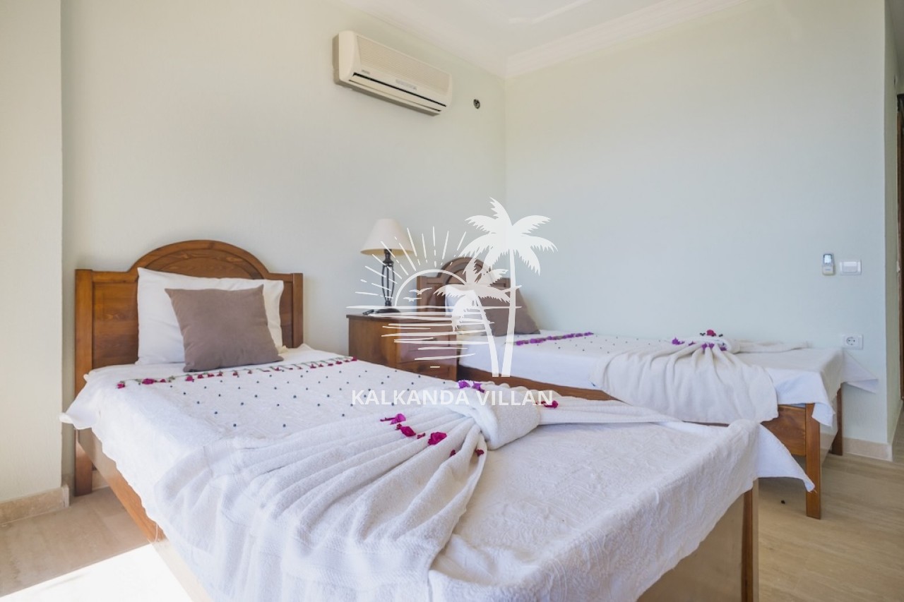 4. Yatak Odası : İki adet tek kişilik yatak, Elbise dolabı, Komodin, Makyaj masası, Klima, Banyo, ve tuvalet bulunmaktadır.