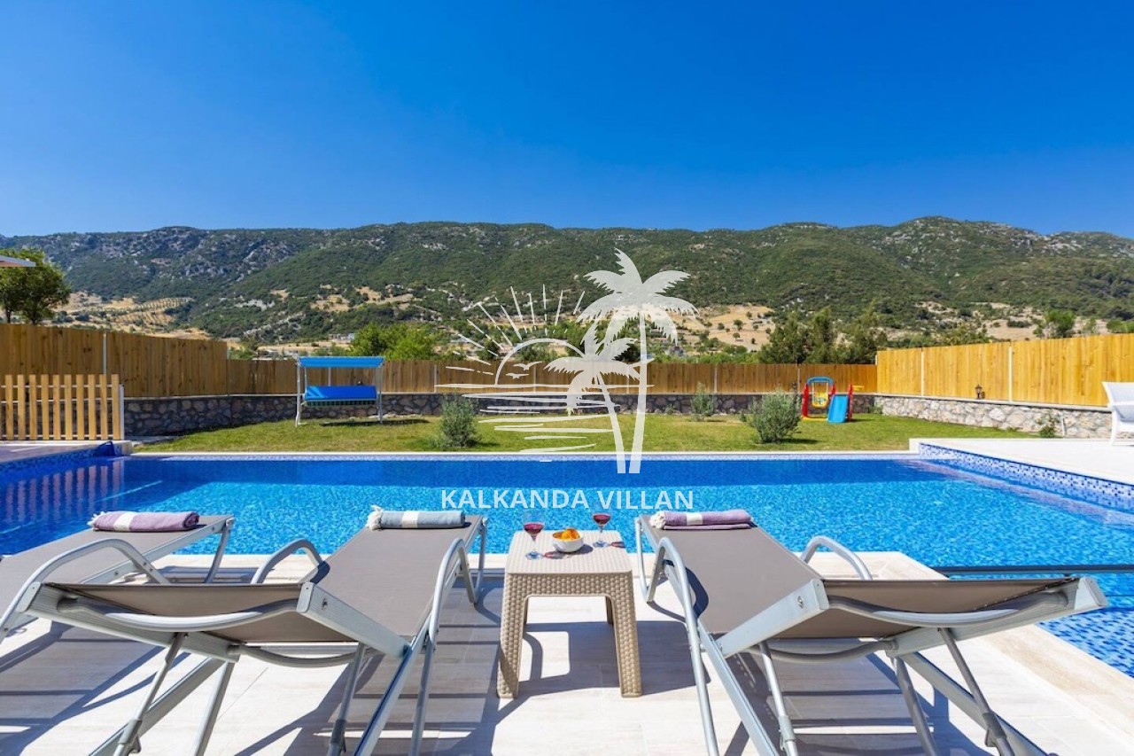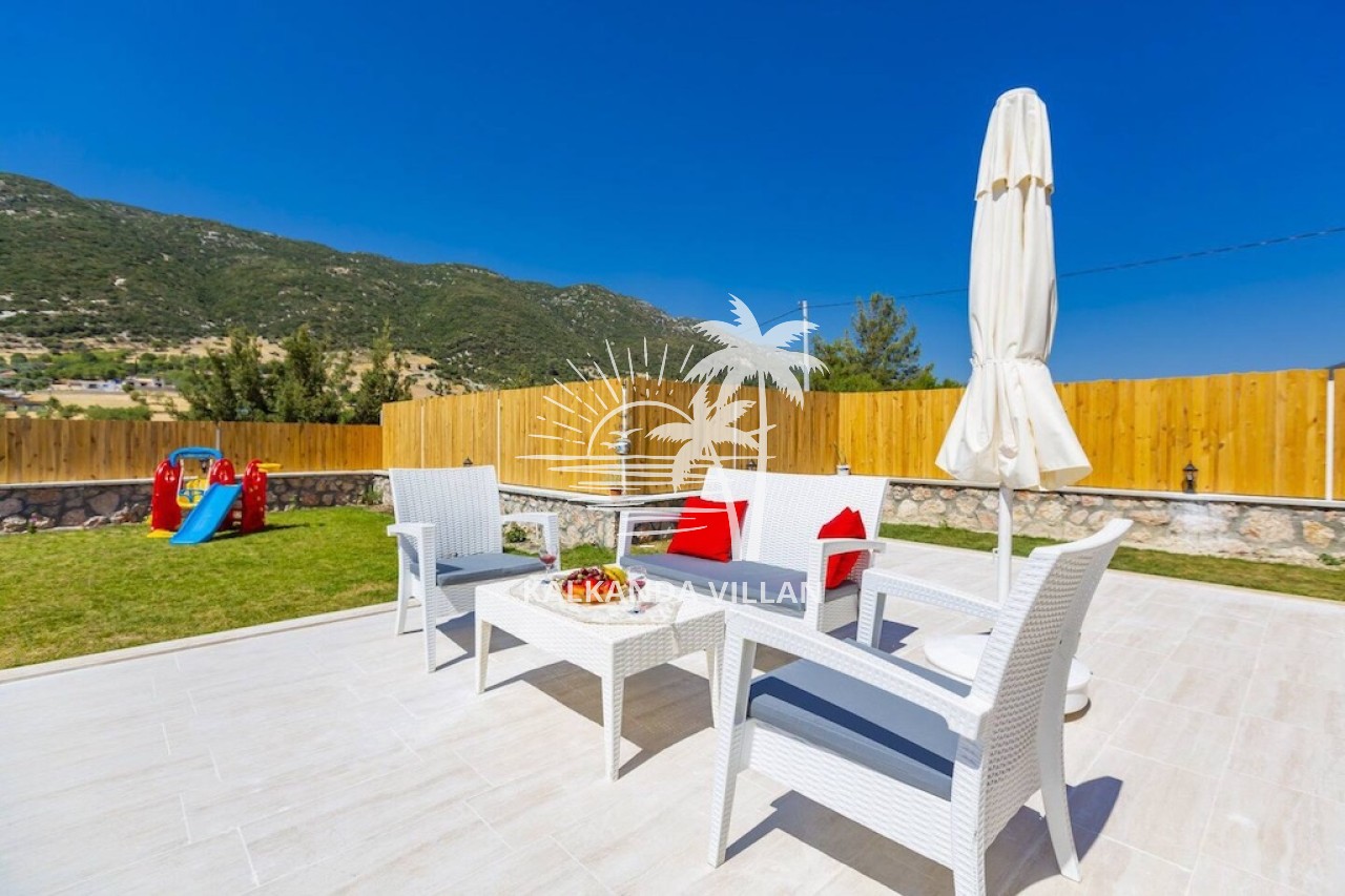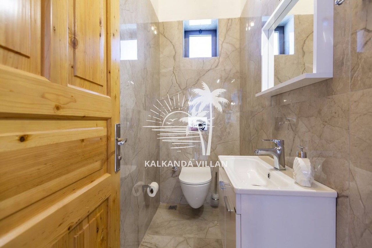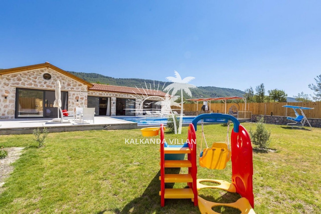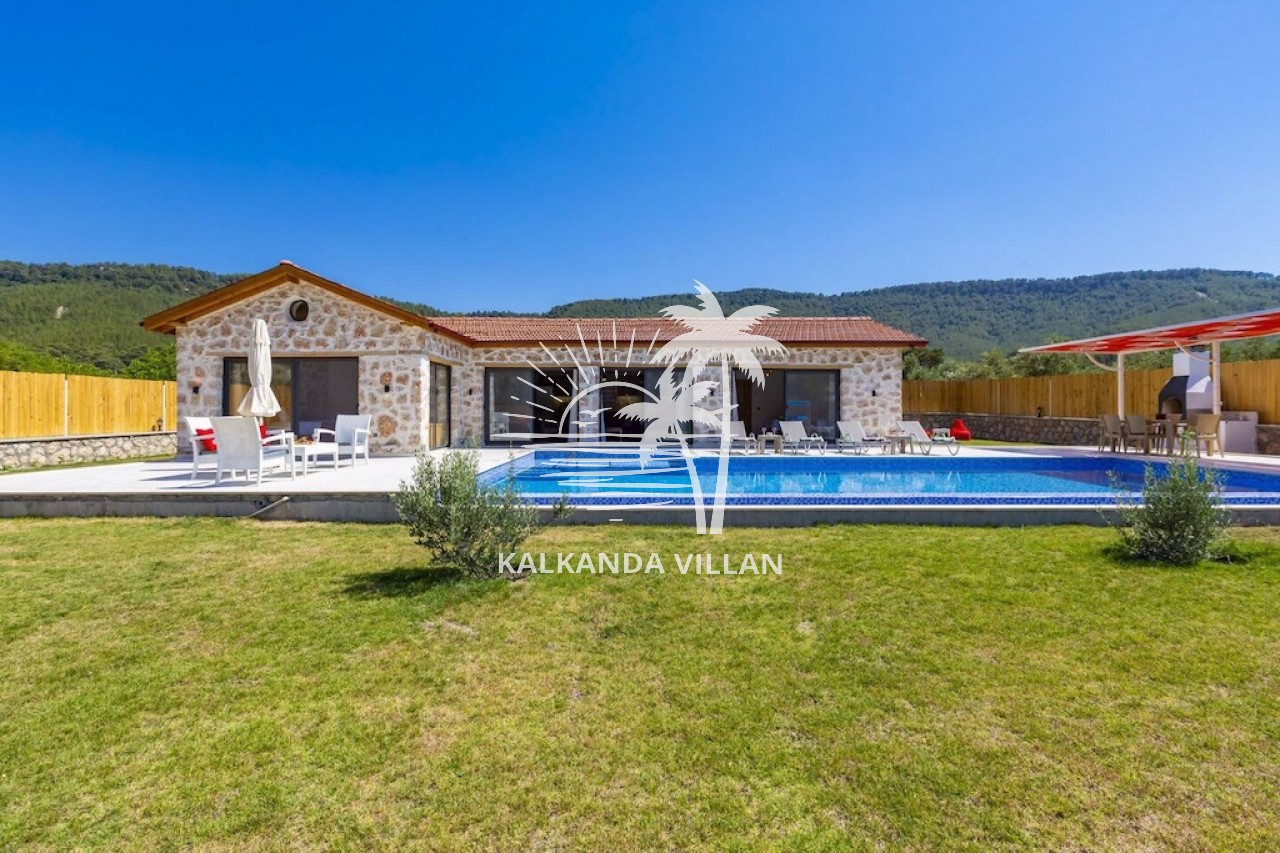 Villa Saye, Kalkan’ın huzurlu Sarıbelen bölgesinde konumlanan, doğayla iç içe ve konforlu bir kiralık villa seçeneğidir. Taş ve ahşap mimarisiyle dikkat çeken villa, modern dekorasyonuyla tatil boyunca ferah bir yaşam alanı sunar. Villa Saye toplam 2 yatak odası ve 2 banyo ile 4 kişiye kadar konaklama imkânı sağlar. İç mekândaki çift kişilik yatak odasında jakuzi gibi özel dokunuşlar, romantik ve rahat bir tatil deneyimi için tasarlanmıştır. Geniş özel yüzme havuzu, korunaklı havuz terası, oturma grupları ve barbekü alanı, dış mekânda keyifli vakit geçirmenizi sağlar. Bahçe ve havuz çevresi doğa manzaralı olarak tasarlanmıştır; bu sayede hem dinlenme hem de eğlence imkânı sunar. Kalkan şehir merkezine ve plajlara kolay ulaşım imkânı sağlayan Villa Saye, Sarıbelen’de kiralık villa arayanlar için doğa, mahremiyet ve konforu bir arada sunan ideal bir tercihtir.