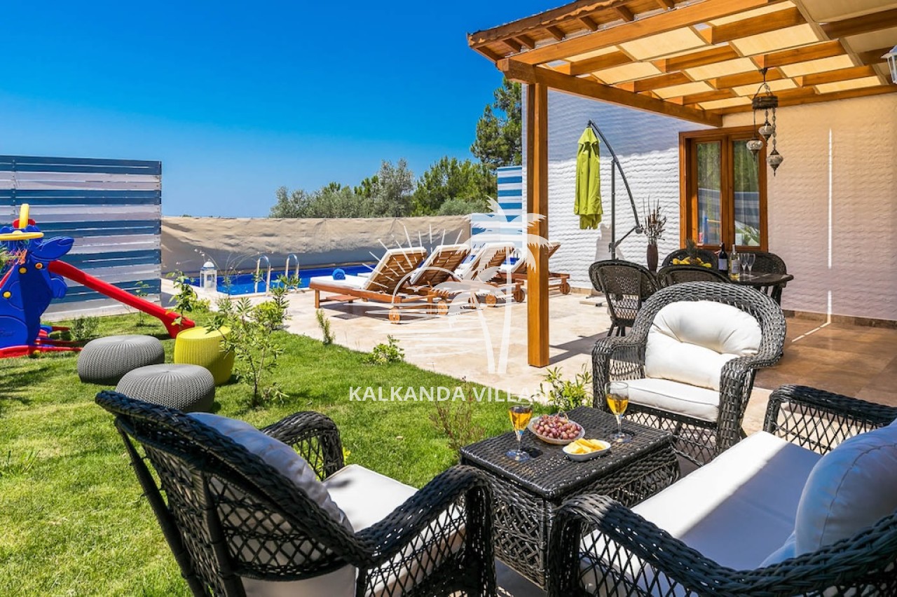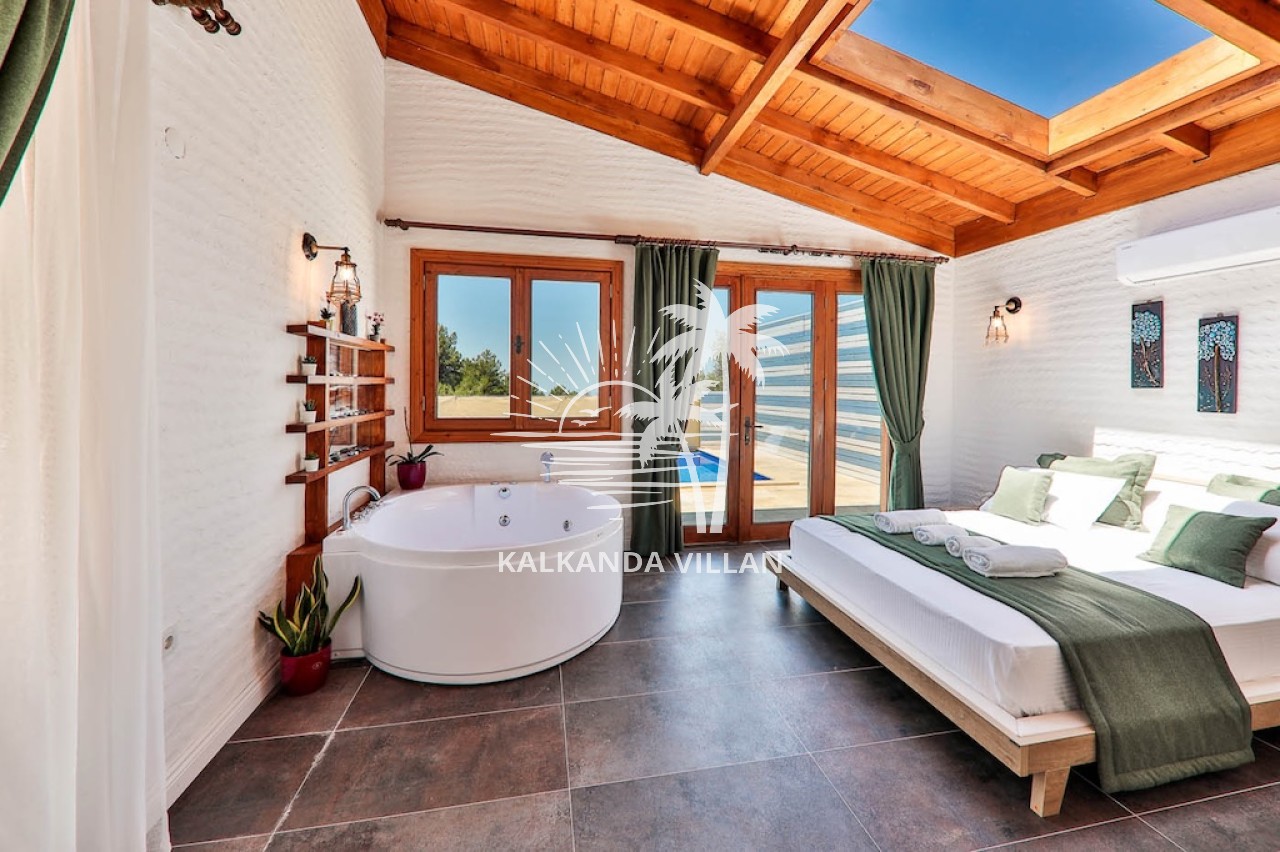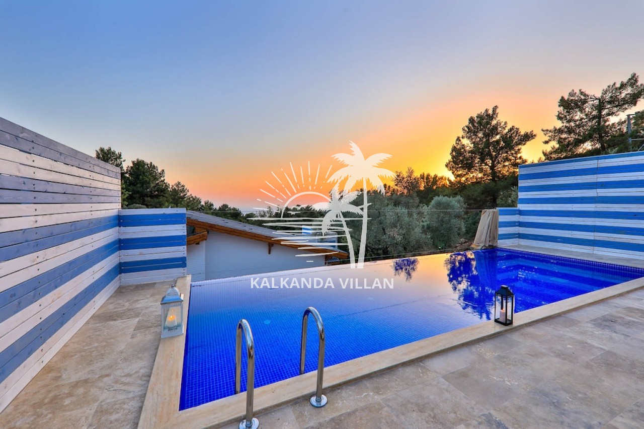 Villa Sunset 2, Kalkan’ın yemyeşil İslamlar köyünde konumlanmış, doğayla iç içe sakin ve huzurlu bir tatil deneyimi sunan şık bir villadır. Modern mimarisi ve özenle dekore edilmiş iç mekanları ile 4 kişiye kadar konaklama olanağı sağlar. Villada iki yatak odası ve iki banyo bulunur; birinci yatak odası özel jakuziyle donatılmış olup romantik ve konforlu bir konaklama deneyimi sunar — bu özellik, balayı çiftleri ve küçük aileler için idealdir. Villanın geniş ve korunaklı özel havuzu, şezlong ve barbekü alanı ile donatılmış geniş bahçesi, hem dinlenme hem de eğlence için tasarlanmıştır. Açık plan salon-mutfağı modern ekipmanlarla donatılmış olup tam donanımlı mutfak sayesinde kendi yemeklerinizi hazırlayabilirsiniz. Doğa manzaralı konumu ile şehir gürültüsünden uzak, Kalkan merkezine ve güzel plajlara kısa sürüş mesafesinde olan Villa Sunset 2, unutulmaz bir Akdeniz tatili için mükemmel bir seçimdir.