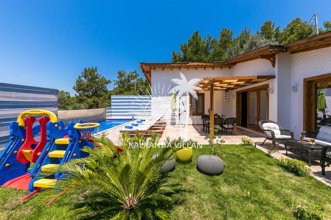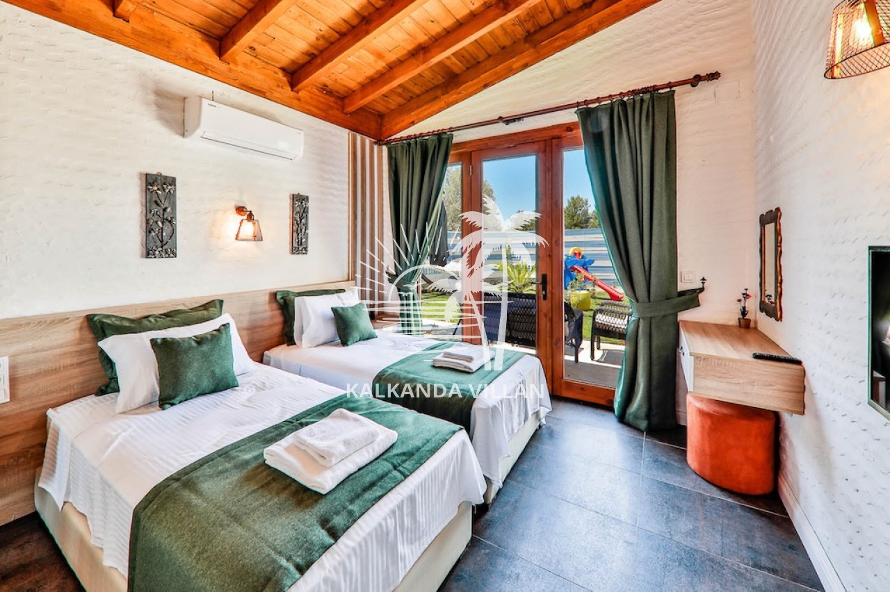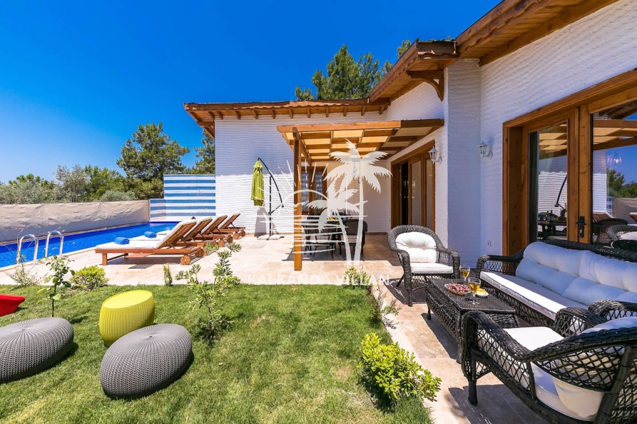 Villa Sunset 2, Kalkan’ın yemyeşil İslamlar köyünde konumlanmış, doğayla iç içe sakin ve huzurlu bir tatil deneyimi sunan şık bir villadır. Modern mimarisi ve özenle dekore edilmiş iç mekanları ile 4 kişiye kadar konaklama olanağı sağlar. Villada iki yatak odası ve iki banyo bulunur; birinci yatak odası özel jakuziyle donatılmış olup romantik ve konforlu bir konaklama deneyimi sunar — bu özellik, balayı çiftleri ve küçük aileler için idealdir. Villanın geniş ve korunaklı özel havuzu, şezlong ve barbekü alanı ile donatılmış geniş bahçesi, hem dinlenme hem de eğlence için tasarlanmıştır. Açık plan salon-mutfağı modern ekipmanlarla donatılmış olup tam donanımlı mutfak sayesinde kendi yemeklerinizi hazırlayabilirsiniz. Doğa manzaralı konumu ile şehir gürültüsünden uzak, Kalkan merkezine ve güzel plajlara kısa sürüş mesafesinde olan Villa Sunset 2, unutulmaz bir Akdeniz tatili için mükemmel bir seçimdir.